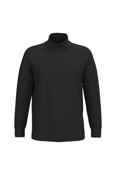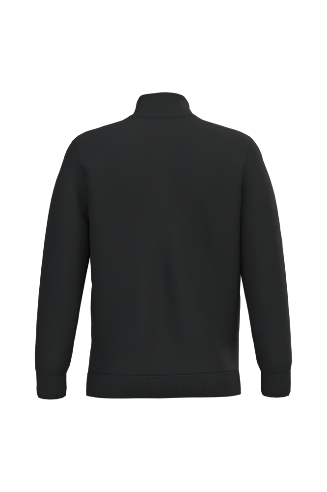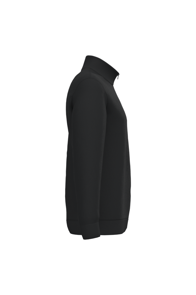 80% cotone / 20% poliestere. Cotone pettinato. Felpa garzata. Maniche a giro. Collo con zip con nastrino di rinforzo. Fondo manica e fondo capo a costine tono su tono.