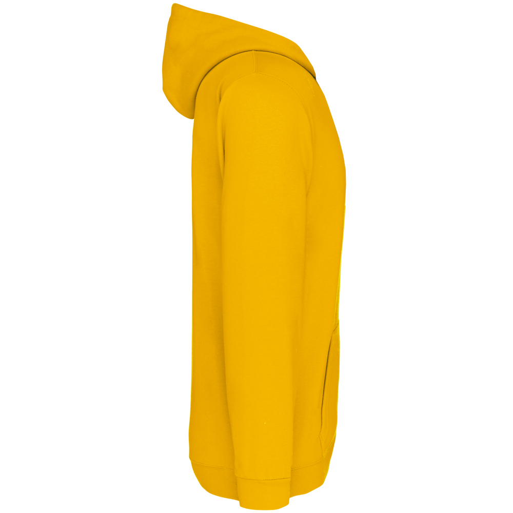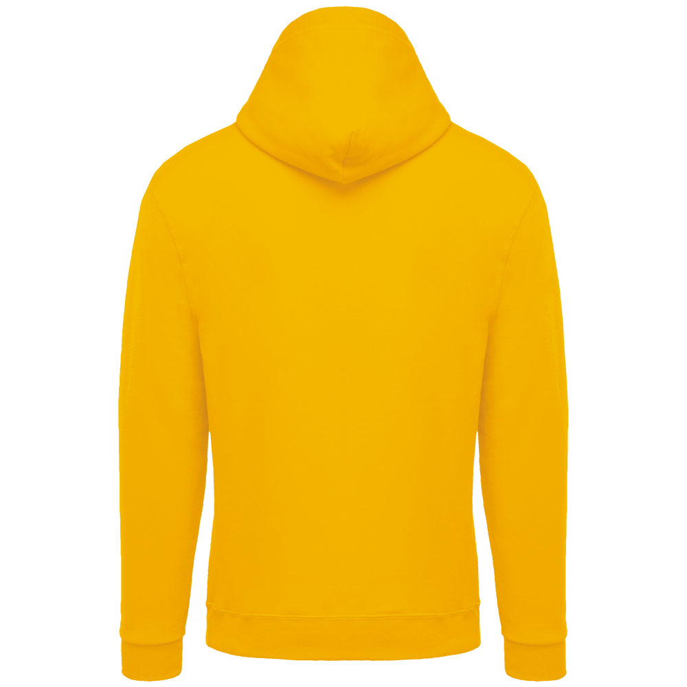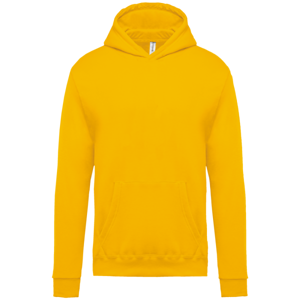 80% cotone / 20% poliestere. Cotone pettinato. Felpa garzata. Maniche a giro. Cappuccio foderato. Tasche a canguro. Fondo manica e fondo capo a costine.
