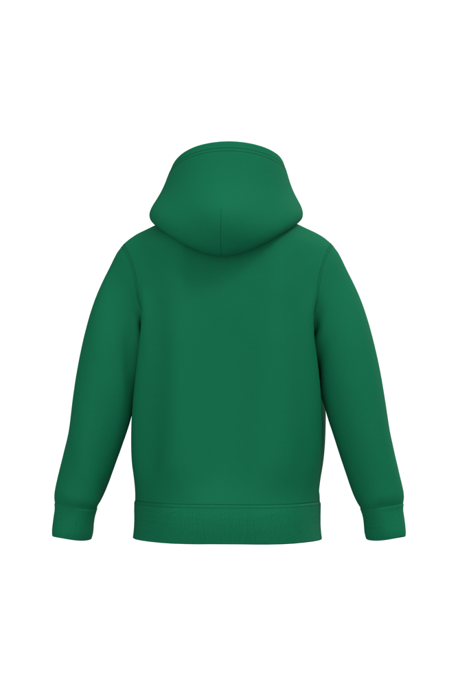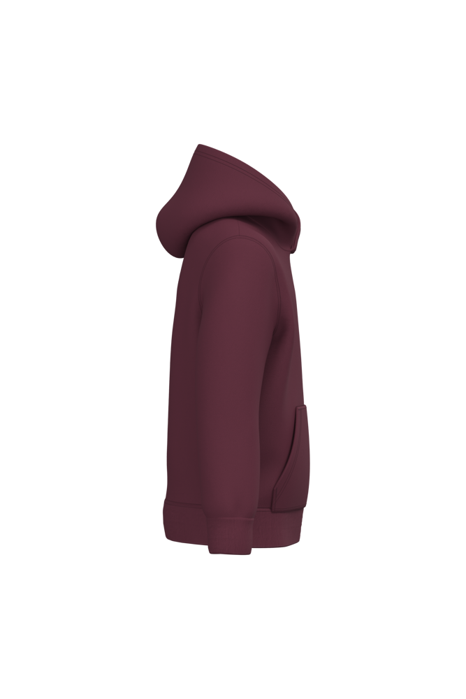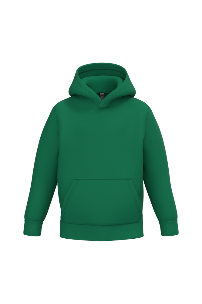 80% cotone / 20% poliestere. Cotone pettinato. Felpa garzata. Maniche a giro. Cappuccio foderato. Tasche a canguro. Fondo manica e fondo capo a costine.