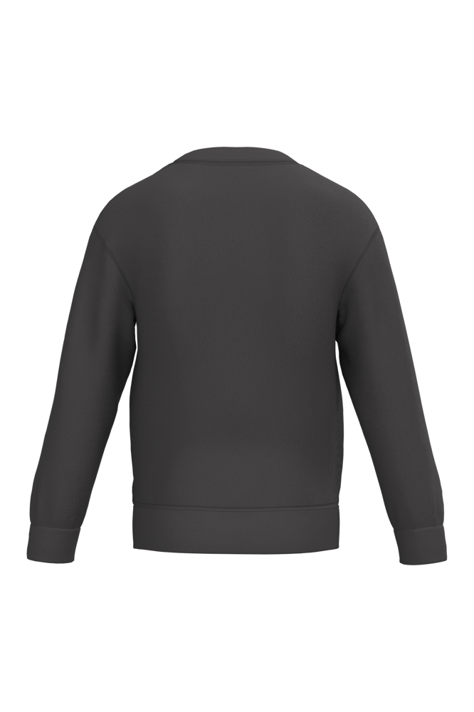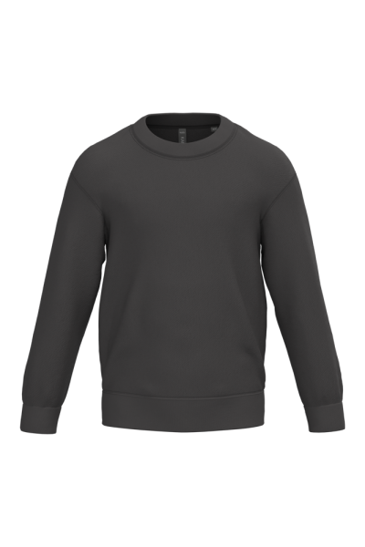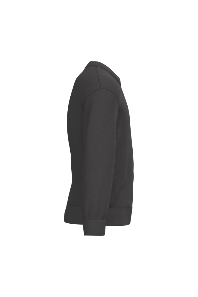 80% cotone / 20% poliestere. Cotone pettinato. Felpa garzata. Maniche a giro. Collo, fondo manica e fondo capo a costine.