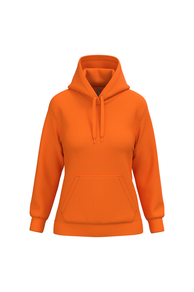 80% cotone / 20% poliestere. Cotone pettinato. Felpa garzata. Maniche a giro. Cappuccio foderato con coulisse tono su tono. Tasche a canguro. Fondo manica e fondo capo a costine.