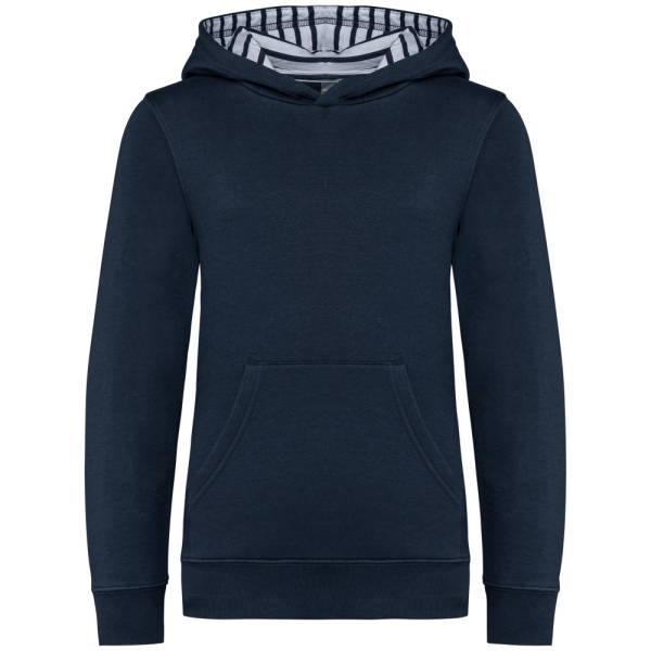 K4014 - Felpa bambino unisex con cappuccio a contrasto con motivi