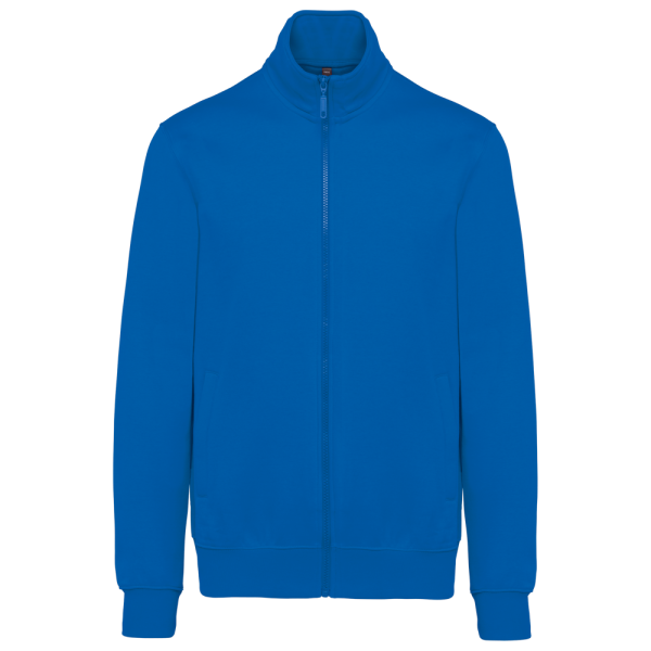 80% cotone / 20% poliestere. Superficie esterna 100% cotone. Trattamento LSF (Low Shrinkage Fleece : felpa preristretta). Felpa garzata a 3 fili in cotone pettinato. Taglio dritto. Maniche dritte. Collo alto. Zip in plastica tono su tono. 2 tasche a filetto con zip sul lato. Finitura a mezzaluna nel collo per facilitare la personalizzazione dall'interno. Fondo manica e fondo capo a costine 1x1. Etichetta con il nome del marchio staccabile.