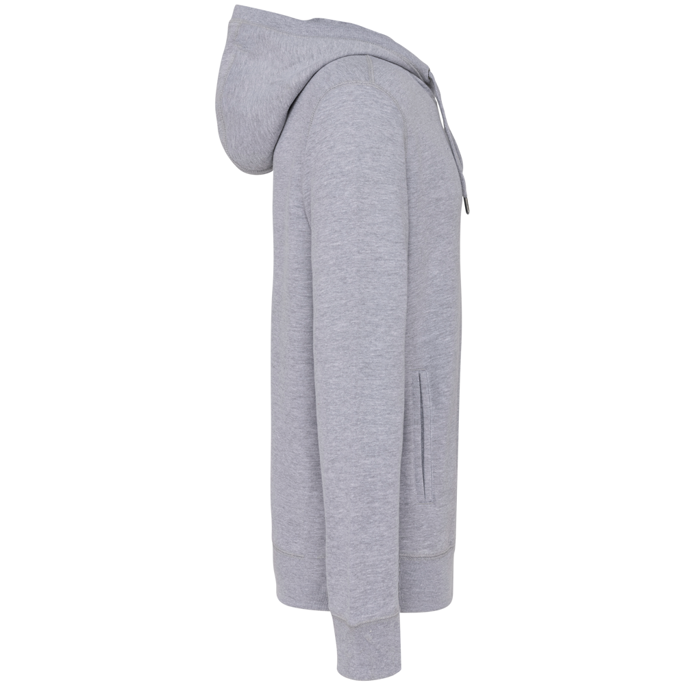 80% cotone biologico / 20% poliestere riciclato post-consumer. Oxford Grey 75% cotone biologico / 25% poliestere riciclato post-consumer. Felpa non garzata French Terry LST (Low Shrinkage Terry). Tessuto : lavaggio agli enzimi. Taglio dritto. 2 tasche a filetto sul davanti. Fondo maniche, fondo capo e bordo del cappuccio a costine, cappuccio foderato e con coulisse tono su tono con puntale in metallo. Finitura a mezzaluna nella parte posteriore del collo che facilita la personalizzazione dall'interno. Nastrino di rinforzo a motivo spigato nel colletto e finitura a V sul collo. Nessuna etichetta con il nome del marchio al collo ; solo una piccola etichetta con l'indicazione della taglia per semplificare la personalizzazione.