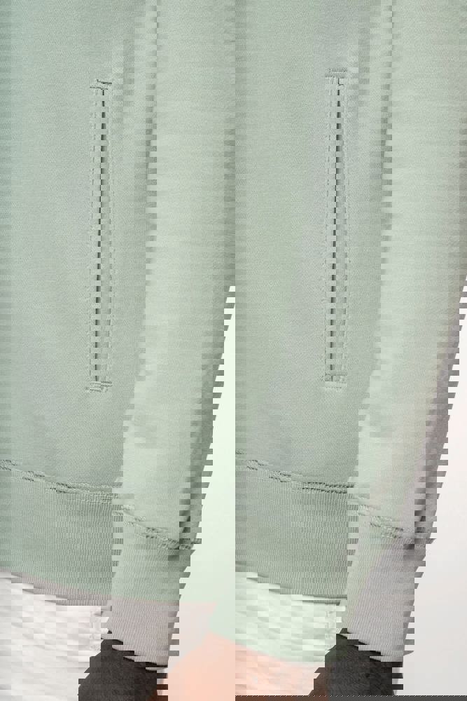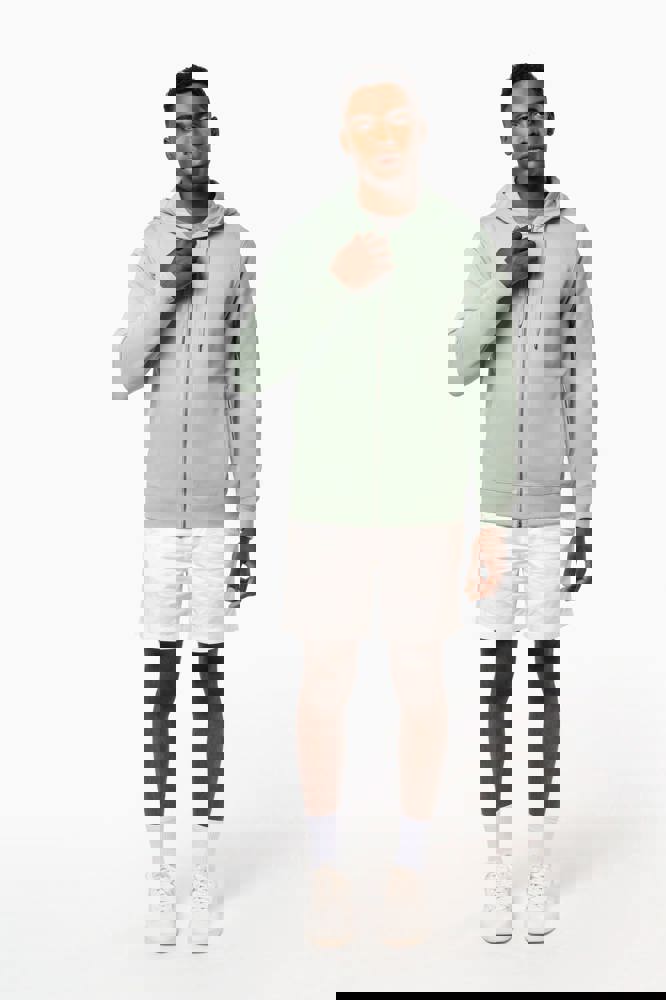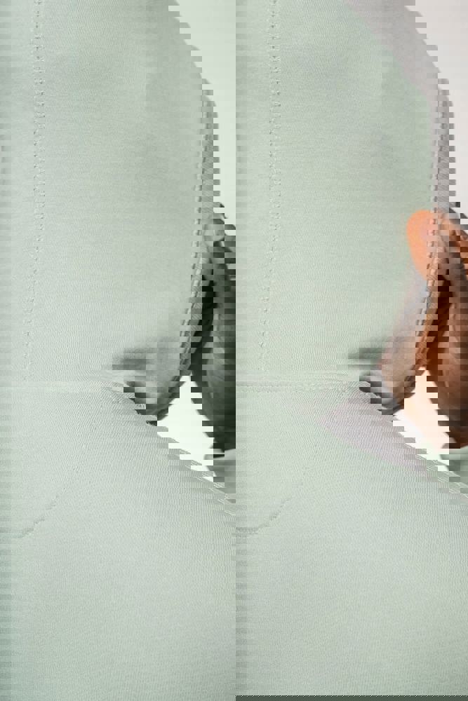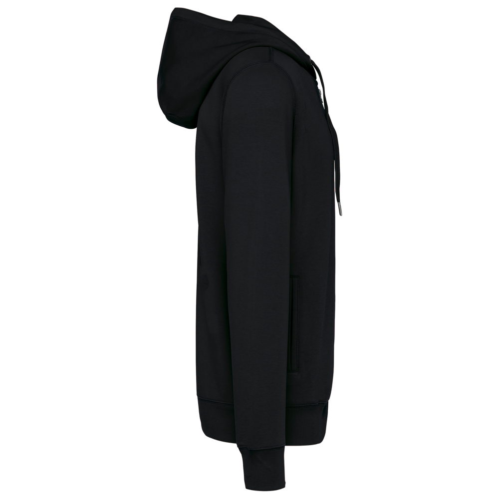 80% cotone biologico / 20% poliestere riciclato post-consumer. Oxford Grey 75% cotone biologico / 25% poliestere riciclato post-consumer. Felpa non garzata French Terry LST (Low Shrinkage Terry). Tessuto: lavaggio agli enzimi. Taglio dritto. 2 tasche a filetto sul davanti. Zip metallica. Fondo maniche, fondo capo e bordo del cappuccio a costine, cappuccio foderato e con coulisse tono su tono con puntale in metallo. Finitura a mezzaluna nella parte posteriore del collo che facilita la personalizzazione dall'interno. Nastrino di rinforzo a motivo spigato sull'interno del collo. Nessuna etichetta con il nome del marchio al collo ; solo una piccola etichetta con l'indicazione della taglia per semplificare la personalizzazione.