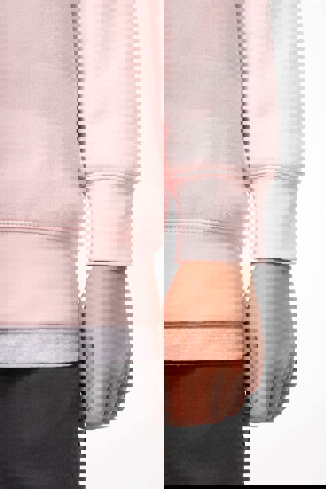 85% cotone biologico / 15% poliestere riciclato post-consumer. Superficie esterna 100% cotone. Tessuto felpato 3 fili LSF (Low Shrinkage Fleece). Cotone pettinato. Lavaggio agli enzimi. Taglio dritto. Costina 1x1 struttura tubolare per una migliore finitura su collo, fondo manica e fondo capo. Nastrino di rinforzo in jersey tono su tono e finitura a mezzaluna sull'interno collo. Finitura a doppio ago su collo, fondo manica e fondo capo. Doppia cucitura su fondo manica, fondo capo e collo. Nessuna etichetta con il nome del marchio al sollo, solo una piccola etichetta con l'indicazione della taglia per semplificare la personalizzazione.