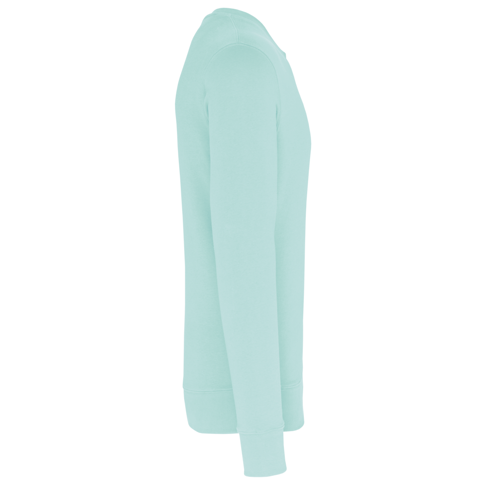 85% cotone biologico / 15% poliestere riciclato post-consumer. Superficie esterna 100% cotone. Tessuto felpato 3 fili LSF (Low Shrinkage Fleece). Cotone pettinato. Lavaggio agli enzimi. Taglio dritto. Costina 1x1 struttura tubolare per una migliore finitura su collo, fondo manica e fondo capo. Nastrino di rinforzo in jersey tono su tono e finitura a mezzaluna sull'interno collo. Doppia impuntura su collo, fondo manica e fondo capo. Finitura a doppio ago su fondo manica, fondo capo e collo. Nessuna etichetta del marchio al collo, solo una piccola etichetta con l'indicazione della taglia per semplificare la personalizzazione.