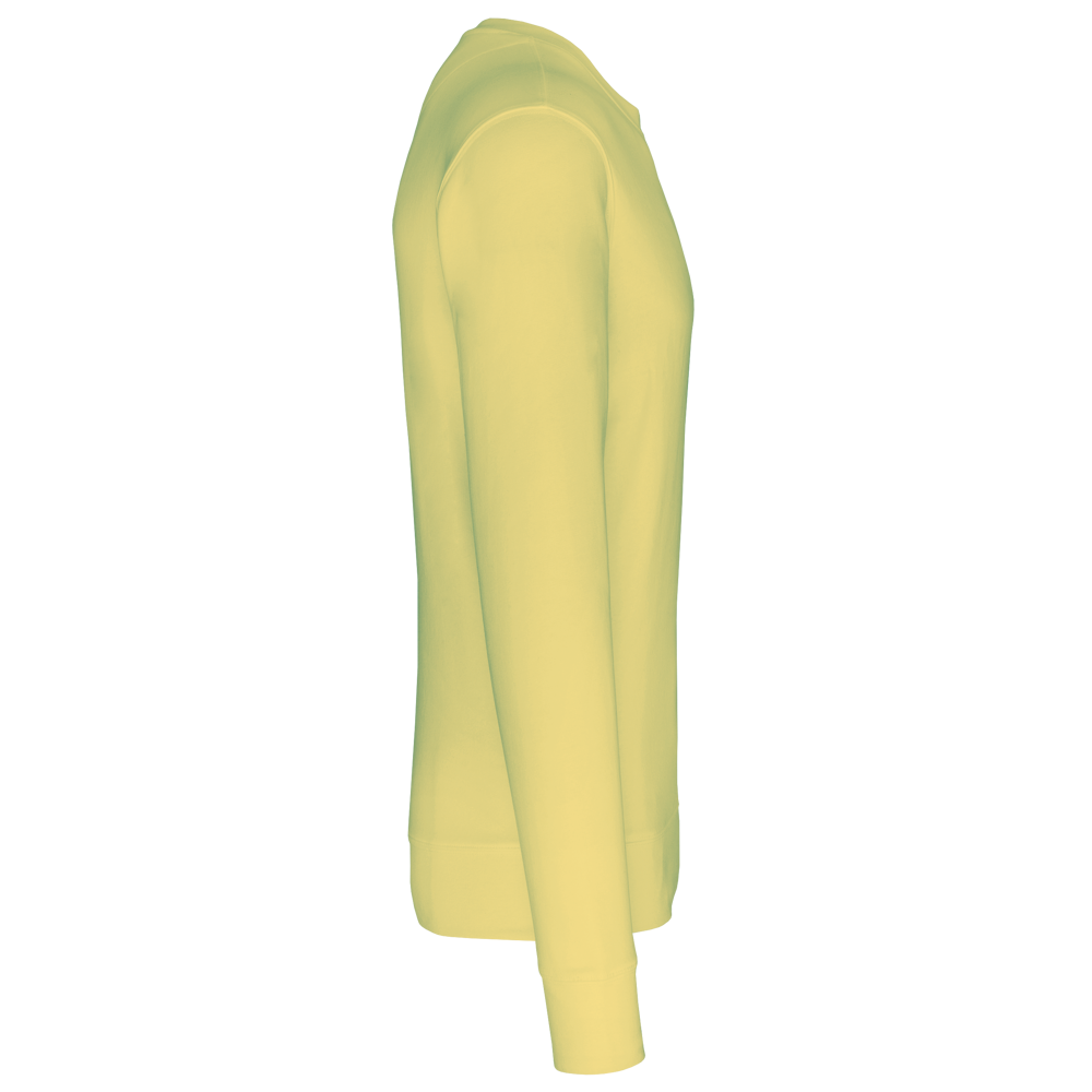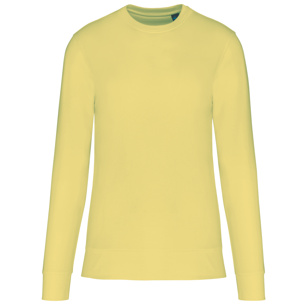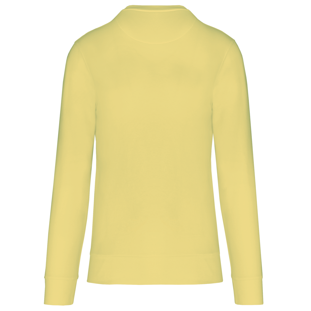 85% cotone biologico / 15% poliestere riciclato post-consumer. Superficie esterna 100% cotone. Tessuto felpato 3 fili LSF (Low Shrinkage Fleece). Cotone pettinato. Lavaggio agli enzimi. Taglio dritto. Costina 1x1 struttura tubolare per una migliore finitura su collo, fondo manica e fondo capo. Nastrino di rinforzo in jersey tono su tono e finitura a mezzaluna sull'interno collo. Doppia impuntura su collo, fondo manica e fondo capo. Finitura a doppio ago su fondo manica, fondo capo e collo. Nessuna etichetta del marchio al collo, solo una piccola etichetta con l'indicazione della taglia per semplificare la personalizzazione.