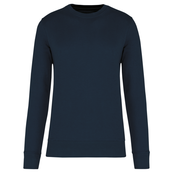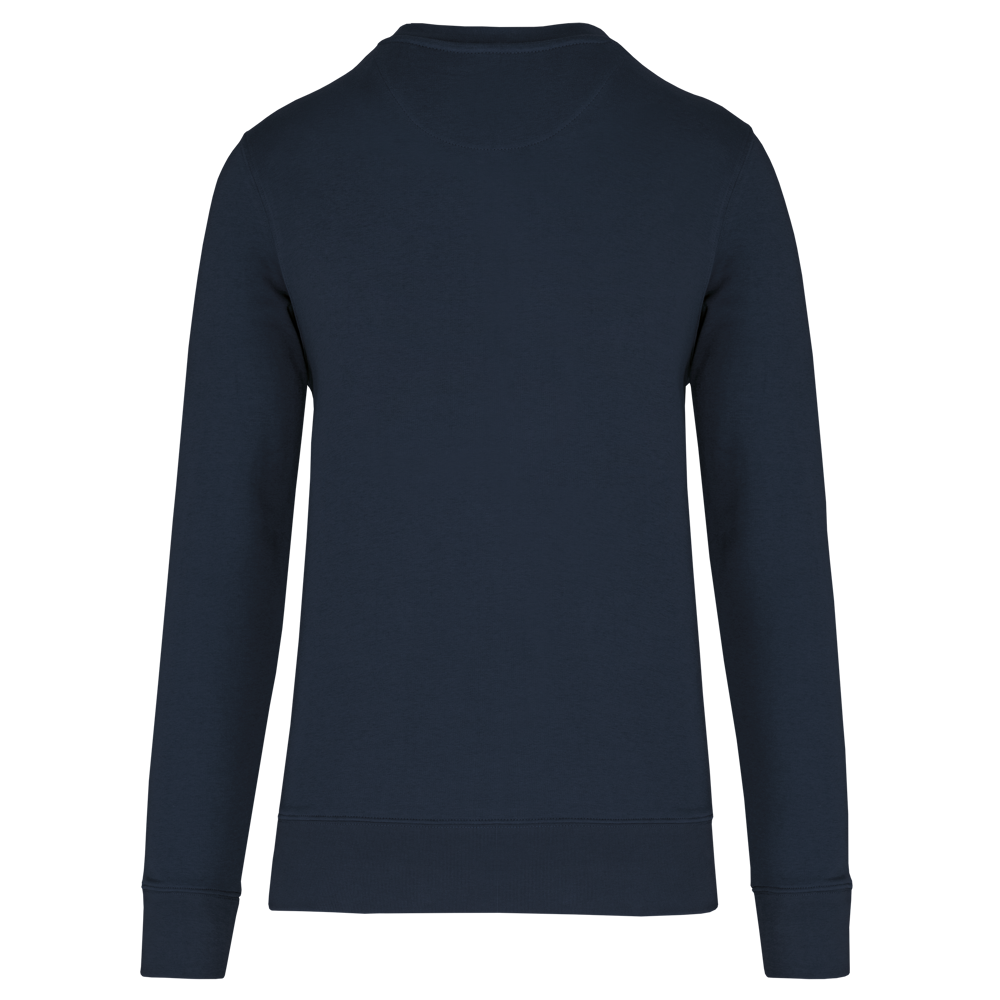 85% cotone biologico / 15% poliestere riciclato post-consumer. Superficie esterna 100% cotone. Tessuto felpato 3 fili LSF (Low Shrinkage Fleece). Cotone pettinato. Lavaggio agli enzimi. Taglio dritto. Costina 1x1 struttura tubolare per una migliore finitura su collo, fondo manica e fondo capo. Nastrino di rinforzo in jersey tono su tono e finitura a mezzaluna sull'interno collo. Doppia impuntura su collo, fondo manica e fondo capo. Finitura a doppio ago su fondo manica, fondo capo e collo. Nessuna etichetta del marchio al collo, solo una piccola etichetta con l'indicazione della taglia per semplificare la personalizzazione.