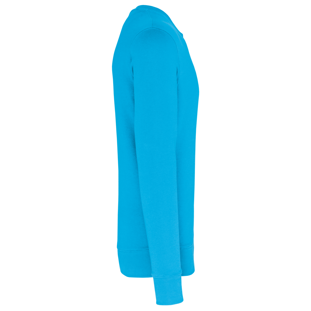 85% cotone biologico / 15% poliestere riciclato post-consumer. Superficie esterna 100% cotone. Tessuto felpato 3 fili LSF (Low Shrinkage Fleece). Cotone pettinato. Lavaggio agli enzimi. Taglio dritto. Costina 1x1 struttura tubolare per una migliore finitura su collo, fondo manica e fondo capo. Nastrino di rinforzo in jersey tono su tono e finitura a mezzaluna sull'interno collo. Doppia impuntura su collo, fondo manica e fondo capo. Finitura a doppio ago su fondo manica, fondo capo e collo. Nessuna etichetta del marchio al collo, solo una piccola etichetta con l'indicazione della taglia per semplificare la personalizzazione.