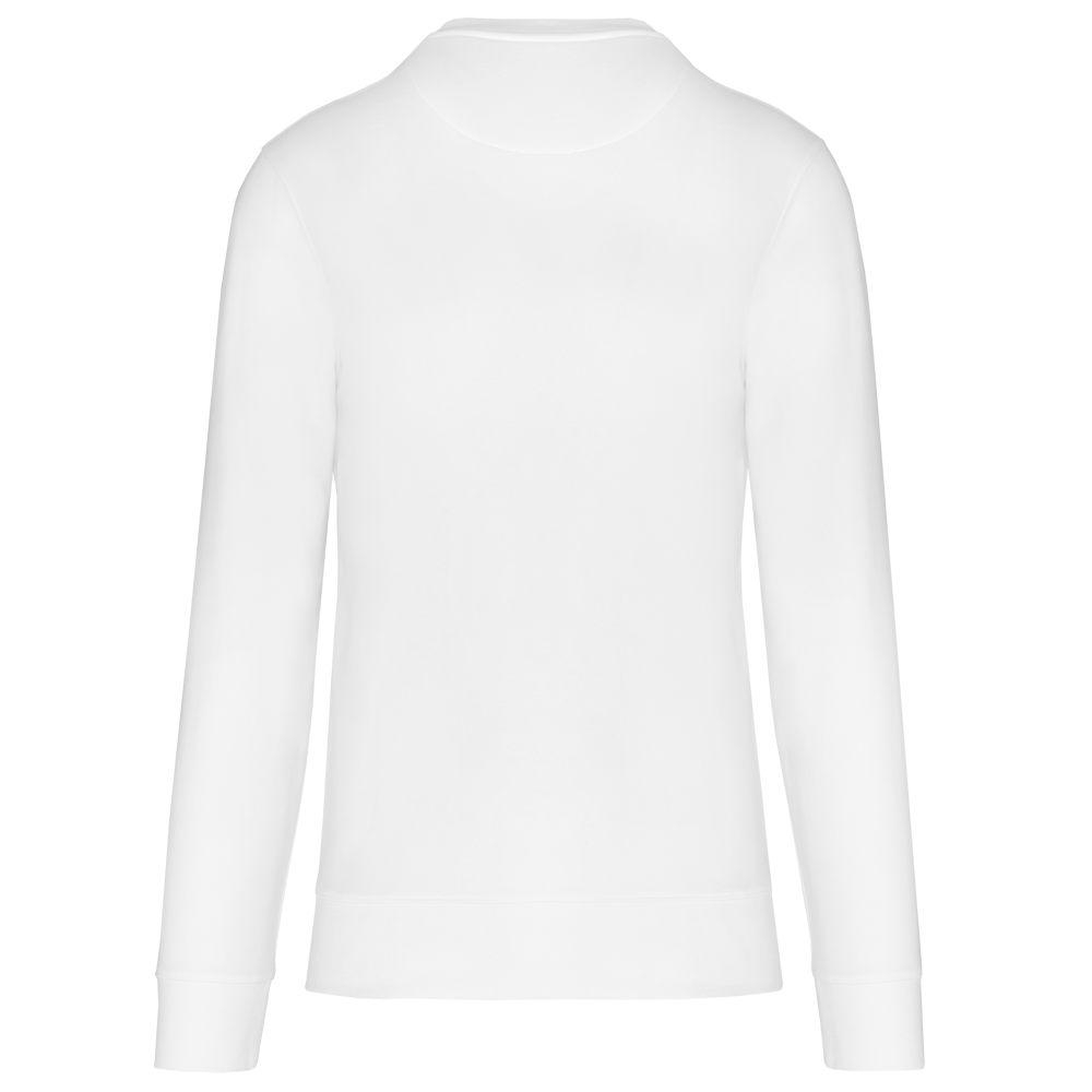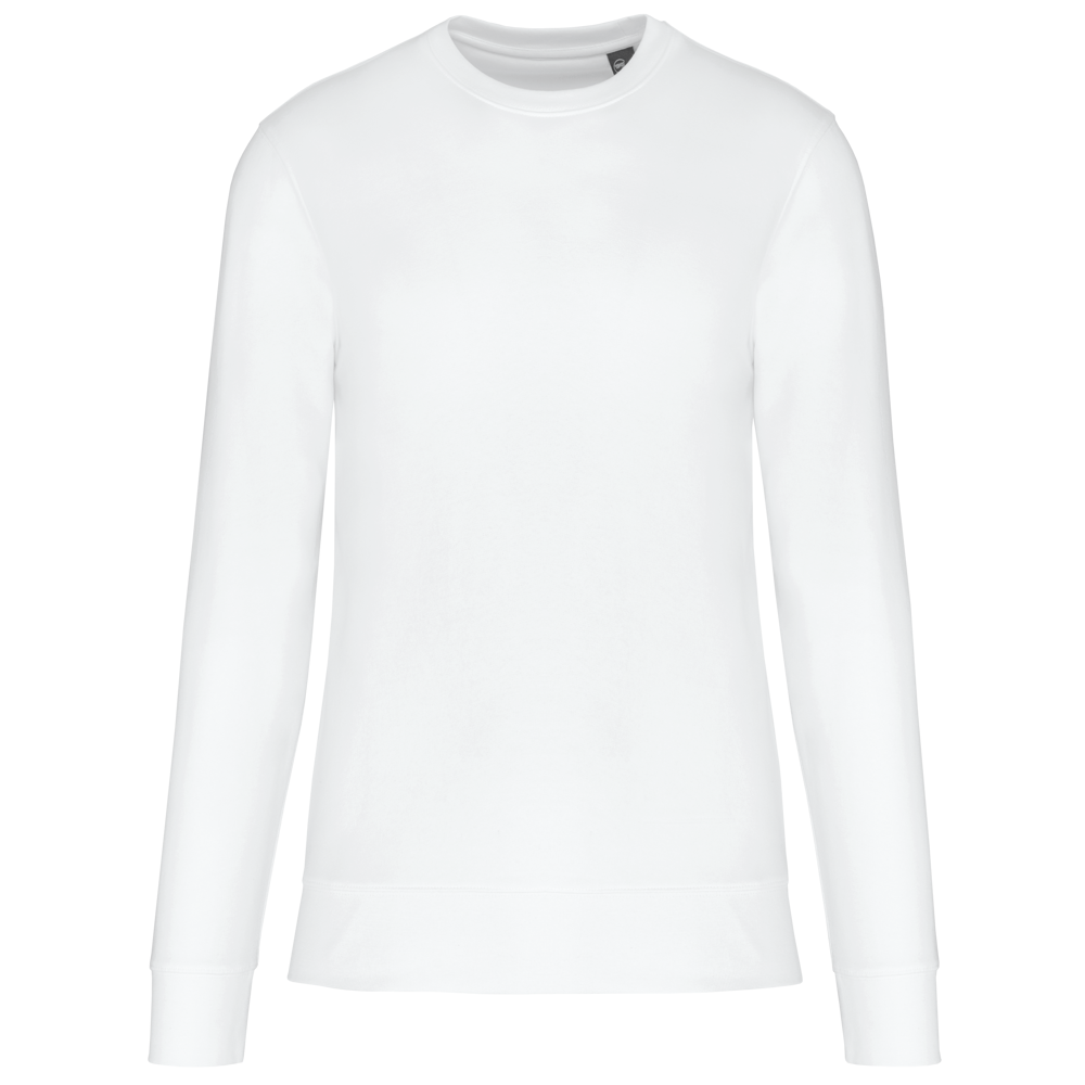 85% cotone biologico / 15% poliestere riciclato post-consumer. Superficie esterna 100% cotone. Tessuto felpato 3 fili LSF (Low Shrinkage Fleece). Cotone pettinato. Lavaggio agli enzimi. Taglio dritto. Costina 1x1 struttura tubolare per una migliore finitura su collo, fondo manica e fondo capo. Nastrino di rinforzo in jersey tono su tono e finitura a mezzaluna sull'interno collo. Doppia impuntura su collo, fondo manica e fondo capo. Finitura a doppio ago su fondo manica, fondo capo e collo. Nessuna etichetta del marchio al collo, solo una piccola etichetta con l'indicazione della taglia per semplificare la personalizzazione.