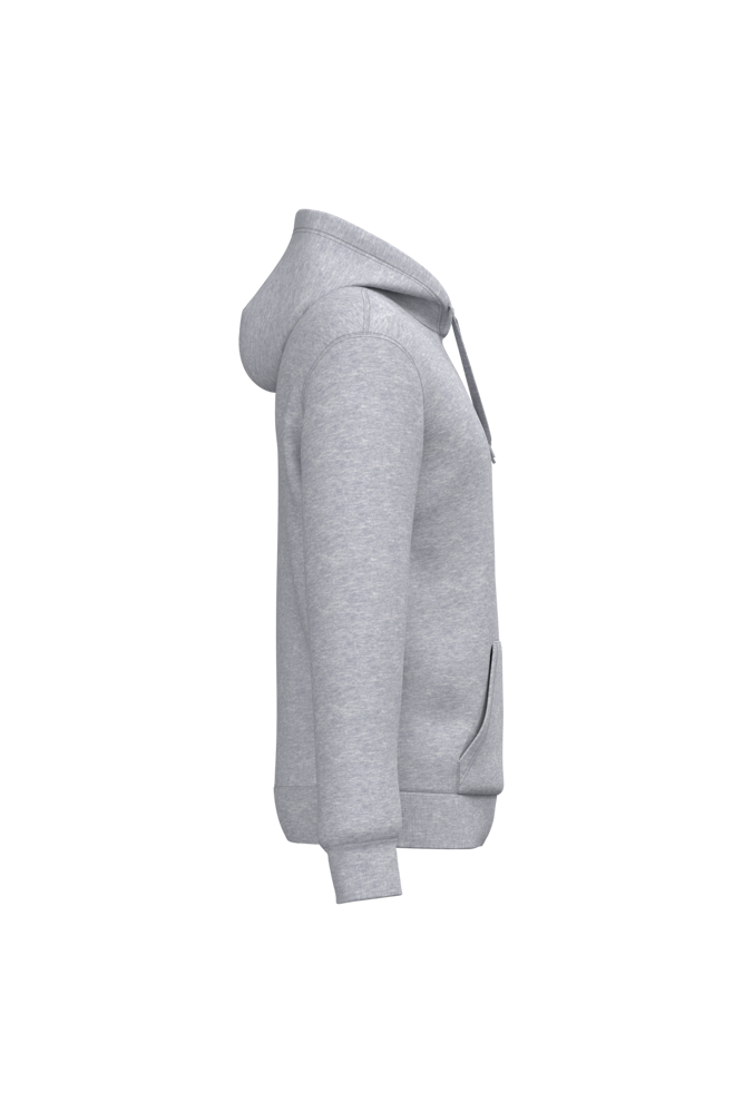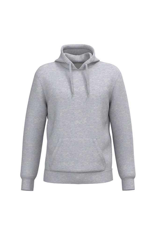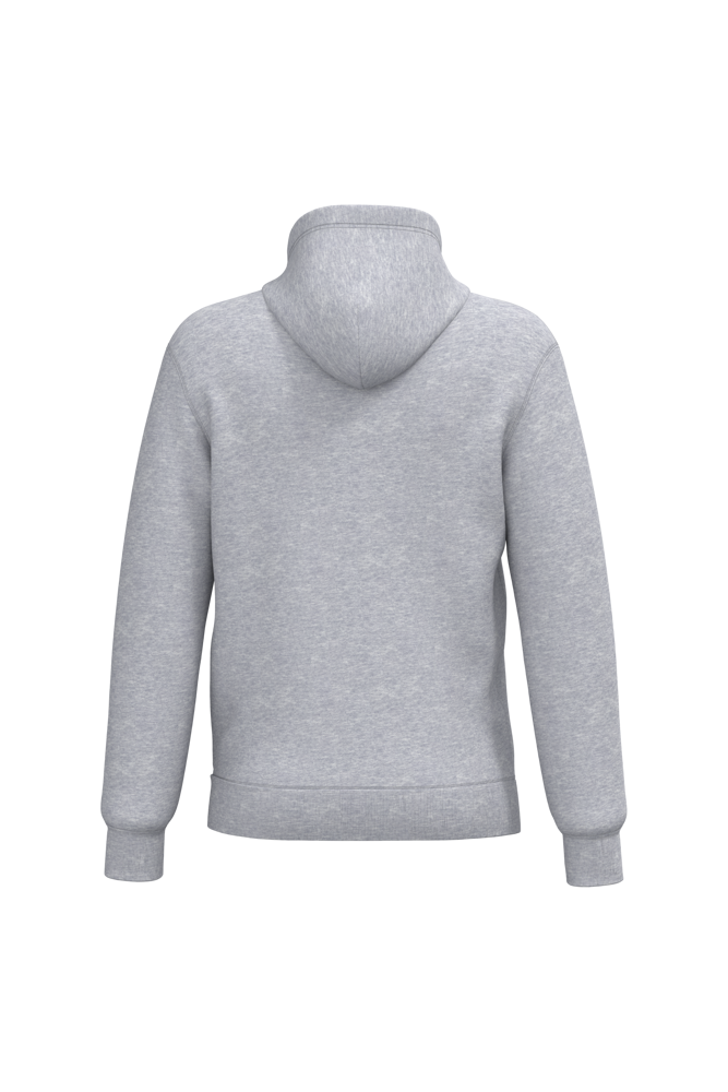 50% cotone ring spun / 50% poliestere riciclato post-consumer. Felpa garzata. Taglio straight. Modello tagliato e cucito. Costina 2x1 a struttura tubolare per una migliore finitura su collo, fondo manica e fondo capo. Tasca a canguro. Cappuccio foderato in policotone jersey con coulisse piatta. Nastrino di rinforzo in jersey tono su tono all'interno del collo. Nessuna etichetta con il nome del marchio sul collo; solo una piccola etichetta con l'indicazione della taglia per semplificare la personalizzazione.