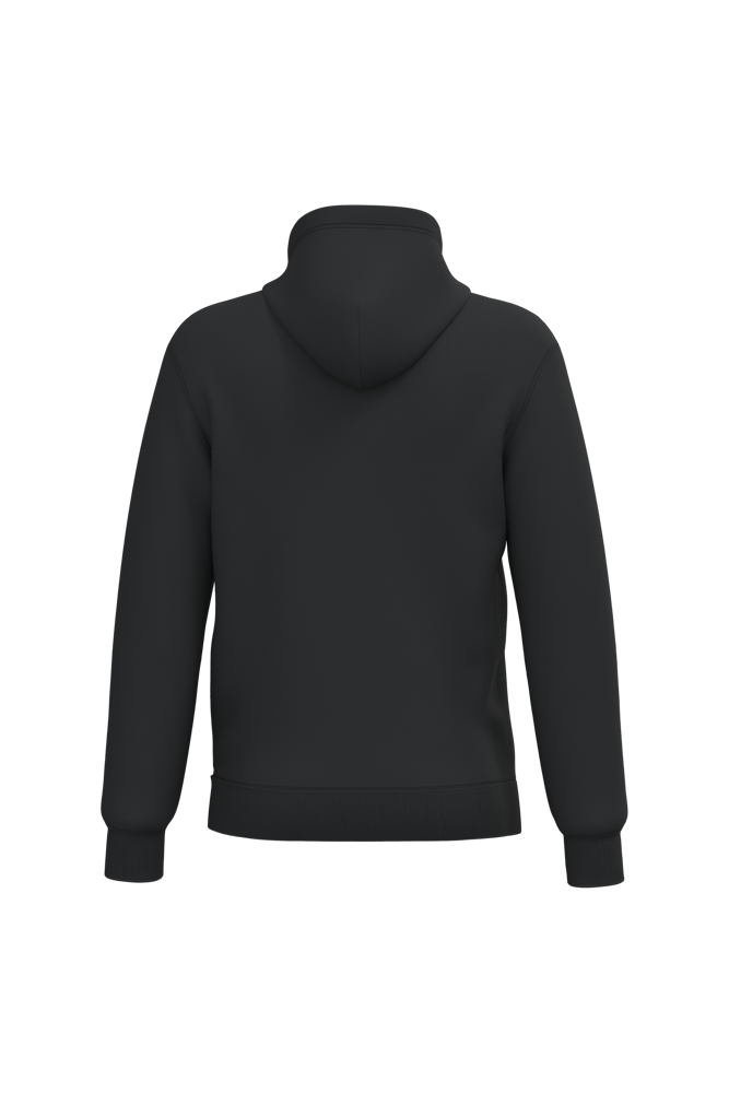 50% cotone ring spun / 50% poliestere riciclato post-consumer. Felpa garzata. Taglio straight. Modello tagliato e cucito. Costina 2x1 a struttura tubolare per una migliore finitura su collo, fondo manica e fondo capo. Tasca a canguro. Cappuccio foderato in policotone jersey con coulisse piatta. Nastrino di rinforzo in jersey tono su tono all'interno del collo. Nessuna etichetta con il nome del marchio sul collo; solo una piccola etichetta con l'indicazione della taglia per semplificare la personalizzazione.