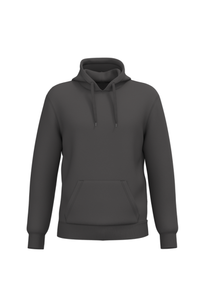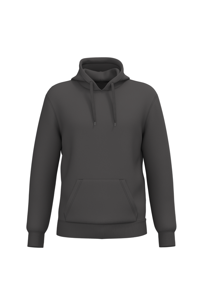50% cotone ring spun / 50% poliestere riciclato post-consumer. Felpa garzata. Taglio straight. Modello tagliato e cucito. Costina 2x1 a struttura tubolare per una migliore finitura su collo, fondo manica e fondo capo. Tasca a canguro. Cappuccio foderato in policotone jersey con coulisse piatta. Nastrino di rinforzo in jersey tono su tono all'interno del collo. Nessuna etichetta con il nome del marchio sul collo; solo una piccola etichetta con l'indicazione della taglia per semplificare la personalizzazione.