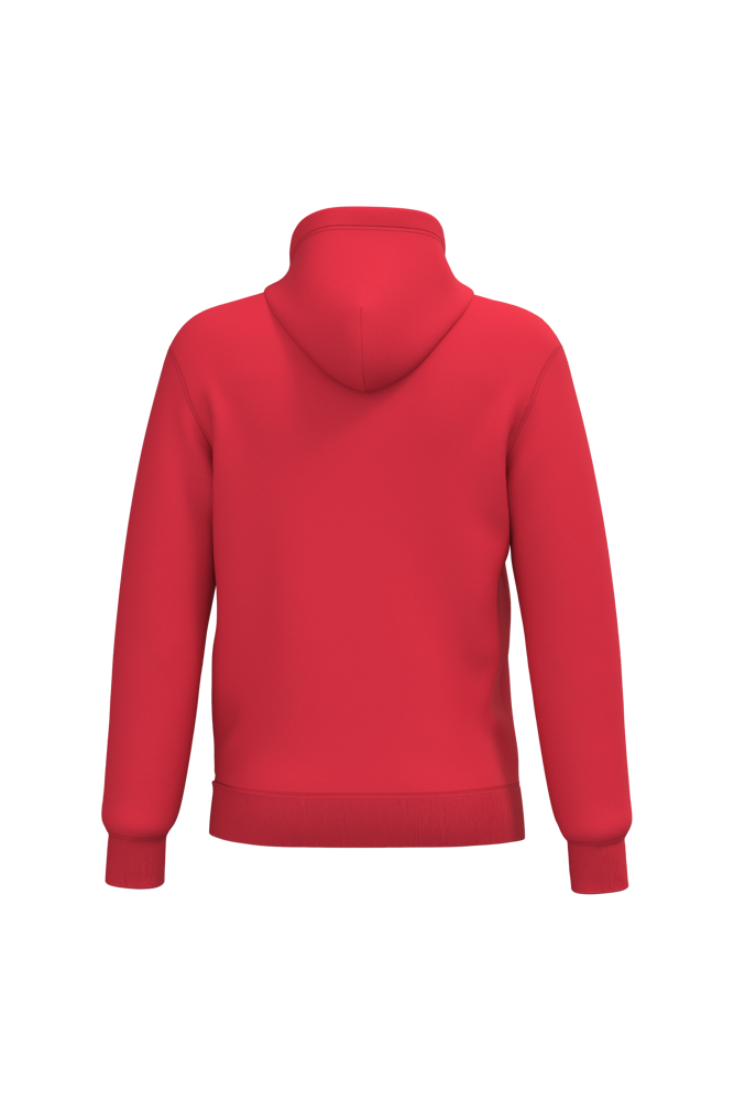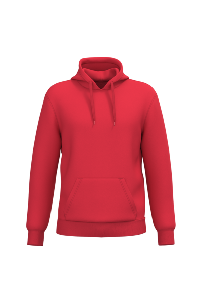 50% cotone ring spun / 50% poliestere riciclato post-consumer. Felpa garzata. Taglio straight. Modello tagliato e cucito. Costina 2x1 a struttura tubolare per una migliore finitura su collo, fondo manica e fondo capo. Tasca a canguro. Cappuccio foderato in policotone jersey con coulisse piatta. Nastrino di rinforzo in jersey tono su tono all'interno del collo. Nessuna etichetta con il nome del marchio sul collo; solo una piccola etichetta con l'indicazione della taglia per semplificare la personalizzazione.