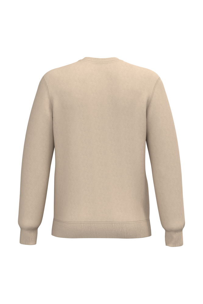 50% cotone ring spun / 50% poliestere riciclato post-consumer. Felpa garzata. Taglio straight. Modello tagliato e cucito. Costina 2x1 a struttura tubolare per una migliore finitura su collo, fondo manica e fondo capo. Nastrino di rinforzo in jersey tono su tono all'interno del collo. Nessuna etichetta con il nome del marchio sul collo; solo una piccola etichetta con l'indicazione della taglia per semplificare la personalizzazione.
