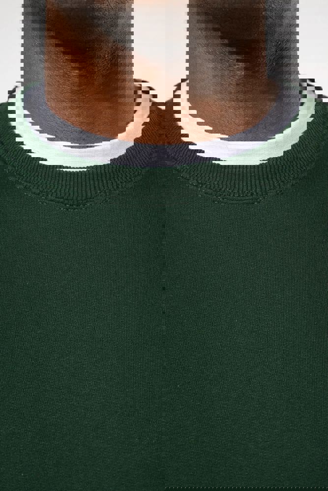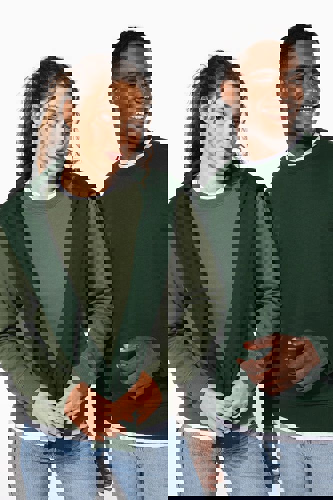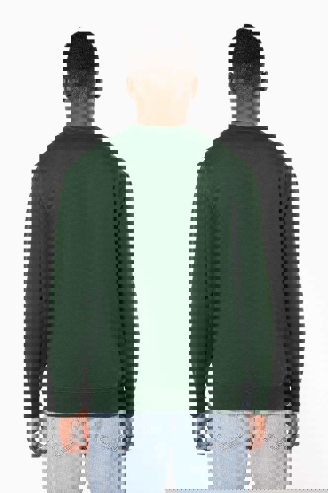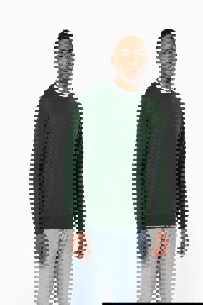 50% cotone ring spun / 50% poliestere riciclato post-consumer. Felpa garzata. Taglio straight. Modello tagliato e cucito. Costina 2x1 a struttura tubolare per una migliore finitura su collo, fondo manica e fondo capo. Nastrino di rinforzo in jersey tono su tono all'interno del collo. Nessuna etichetta con il nome del marchio sul collo; solo una piccola etichetta con l'indicazione della taglia per semplificare la personalizzazione.