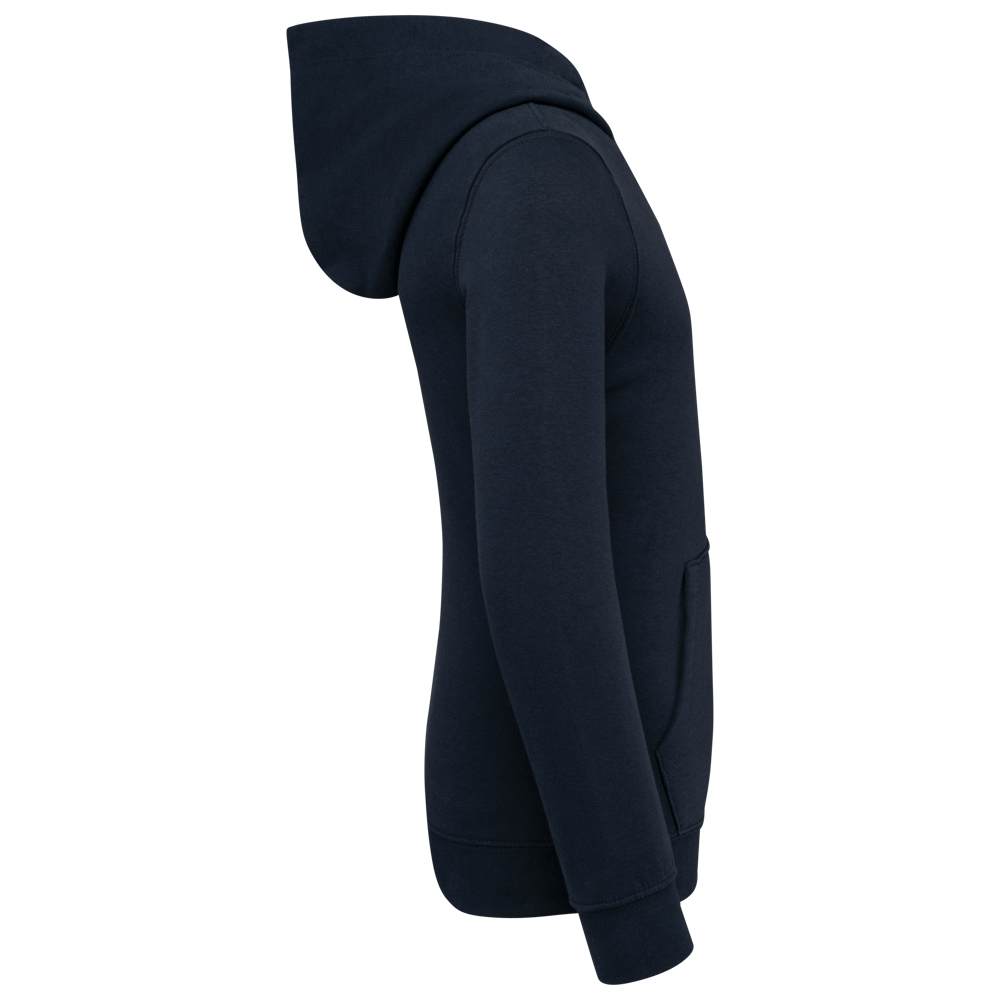80% cotone/20% poliestere. Cotone pettinato. Felpa garzata LSF (Low Shrinkage Fleece) a 3 strati con trattamento anti-pilling. Prodotto in Portogallo. Taglio dritto. Fondo manica e orlo a costine 1x1. Cappuccio foderato in jersey di cotone. Doppia impuntura su spalle, giromanica, fondo manica e orlo. Nastrino di rinforzo in jersey abbinato all'interno del colletto. Tasca a marsupio. Lunetta sul retro. Etichetta con il nome sulla parte interna dell'indumento. Nessuna etichetta con marchio sul collo, solo una piccola etichetta con la taglia per una facile decorazione.