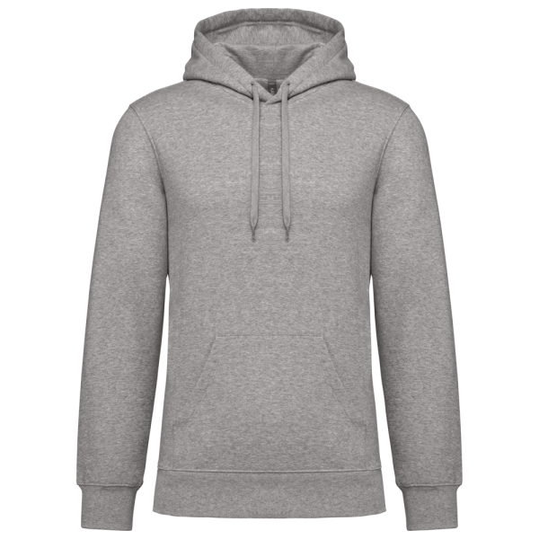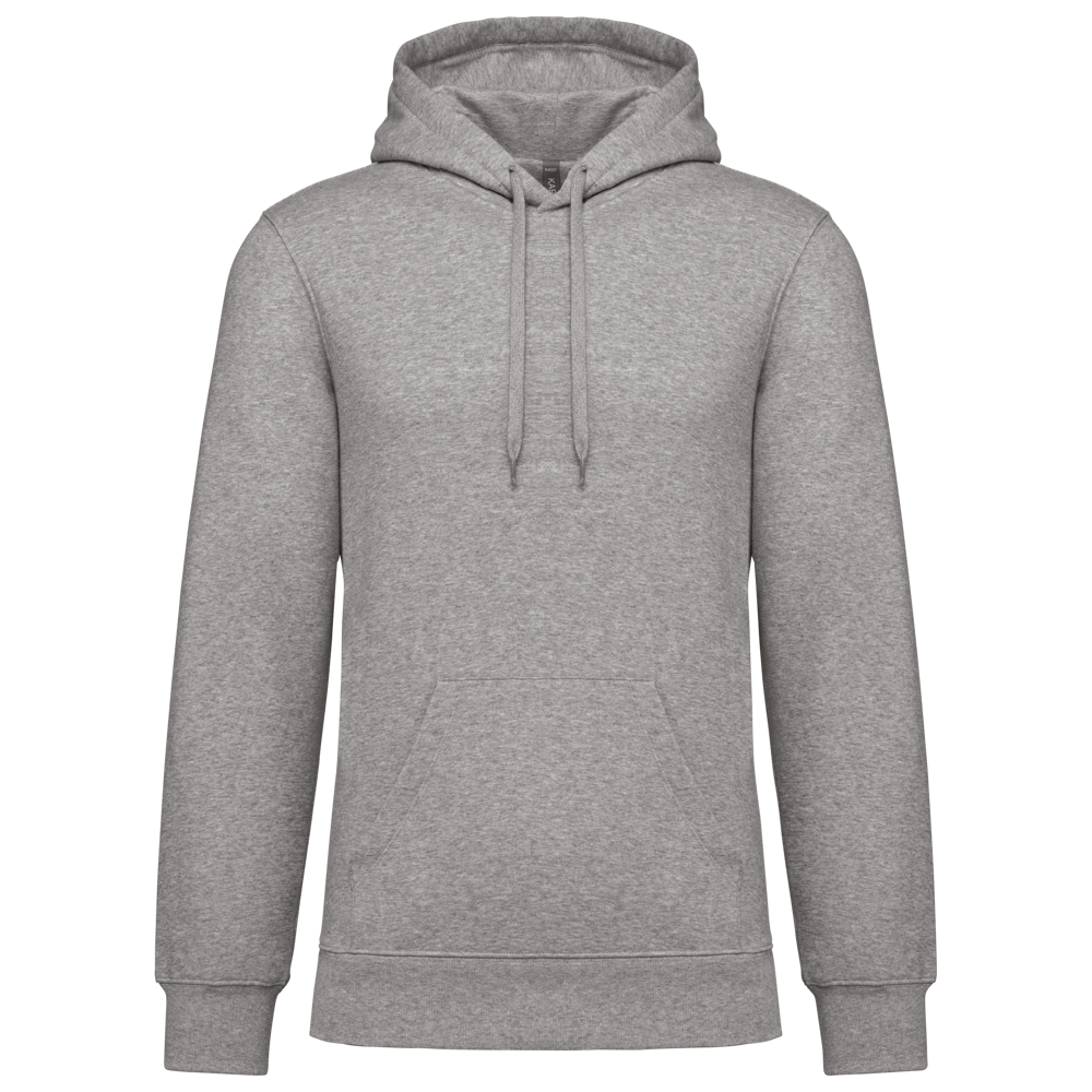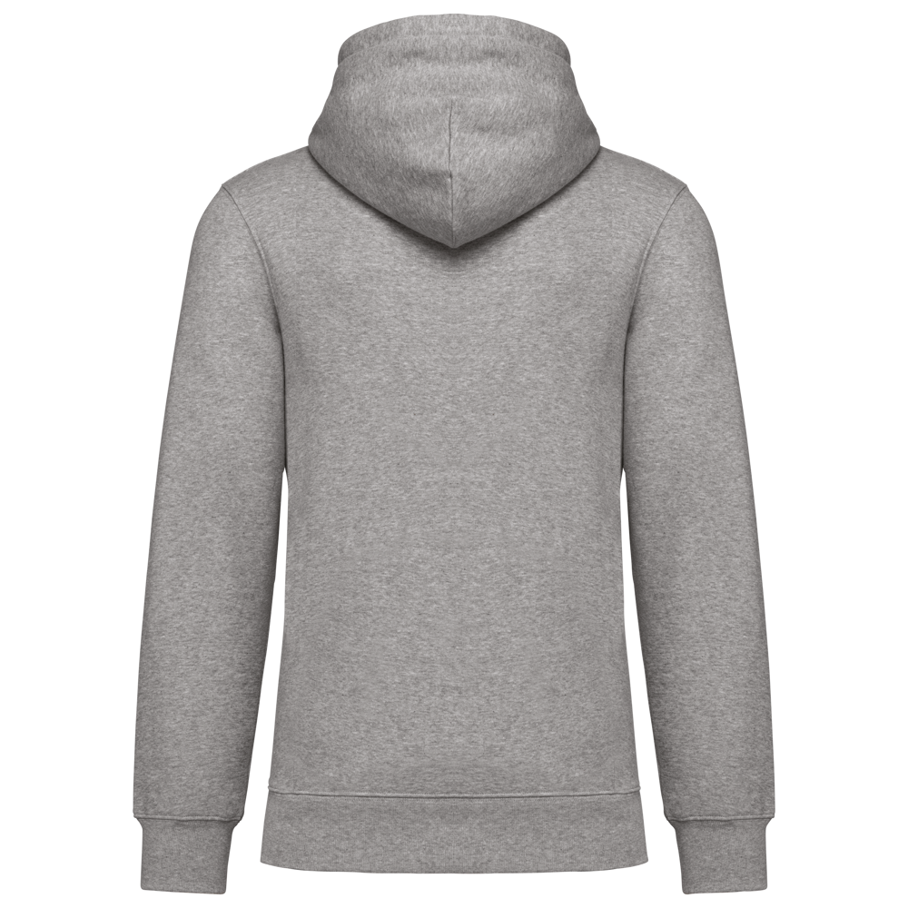 80% cotone / 20% poliestere. Tessuto in felpa garzata LSF 3 fili (Low Shrinkage Fleece) con trattamento antipilling. Capo fabbricato in Portogallo. Taglio straight. Struttura tagliata e cucita. Costina 1x1 a struttura tubolare per una migliore finitura a fondo manica e fondo capo. Tasca a canguro. Cappuccio foderato 100% in cotone jersey con coulisse piatta e occhielli ad asola. Finitura a mezzaluna all'interno del collo. Finitura a doppia impuntura a fondo manica e fondo capo. Nessuna etichetta con il nome del marchio sul collo; solo una piccola etichetta con l'indicazione della taglia per semplificare la personalizzazione.