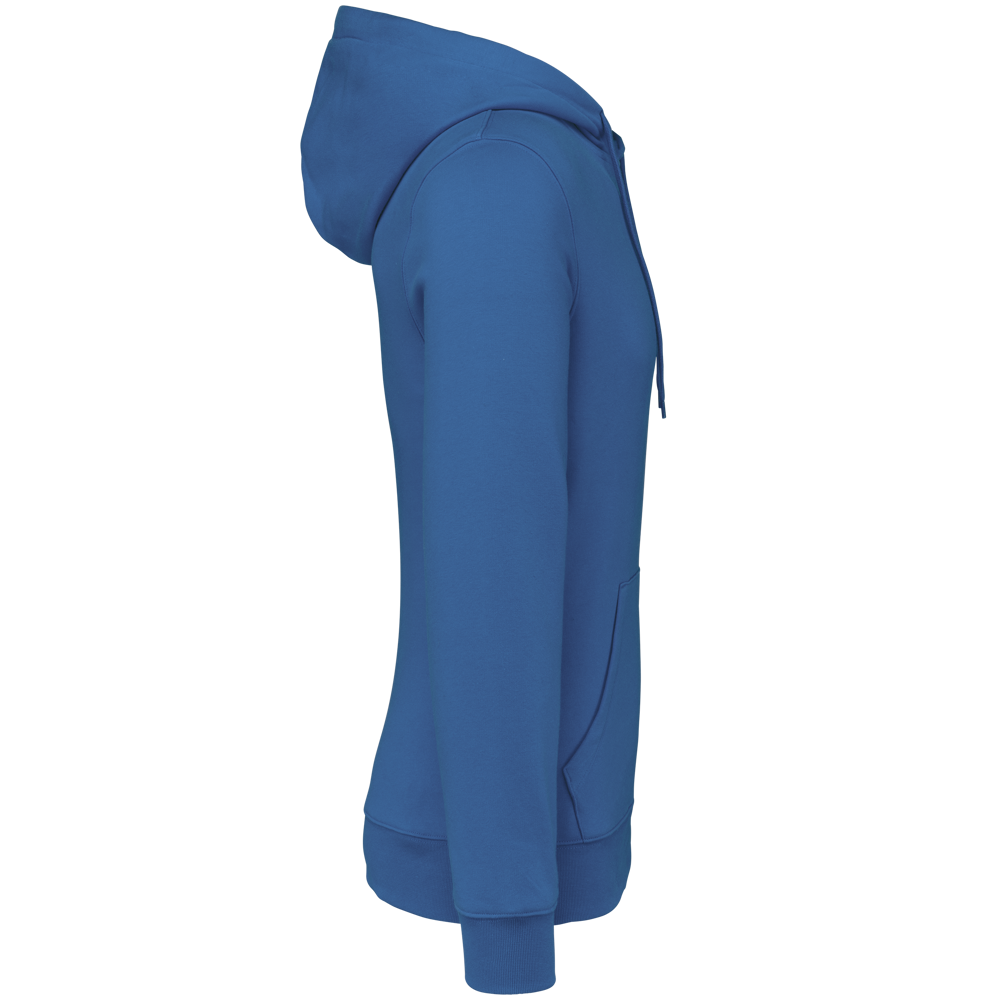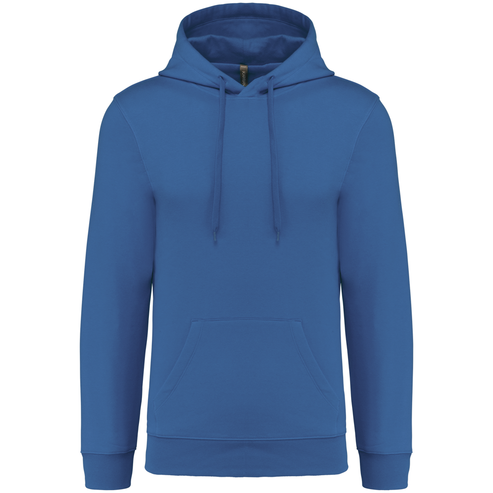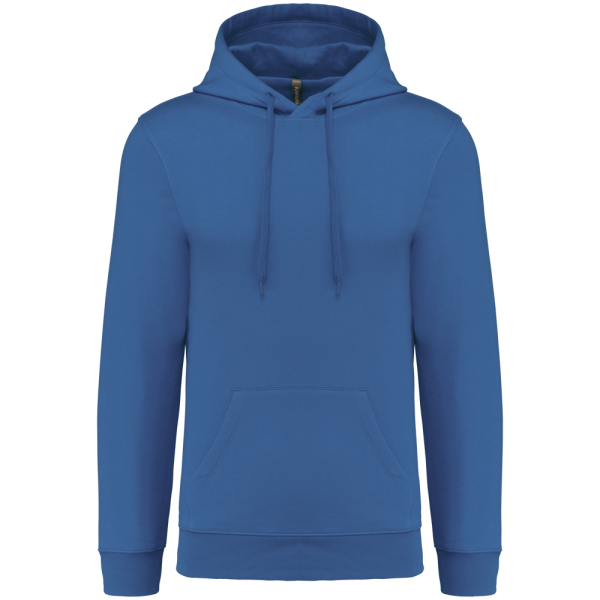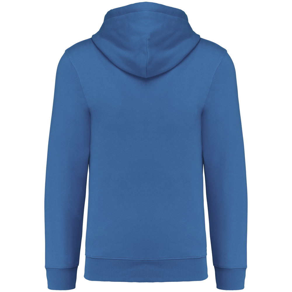 80% cotone / 20% poliestere. Tessuto in felpa garzata LSF 3 fili (Low Shrinkage Fleece) con trattamento antipilling. Capo fabbricato in Portogallo. Taglio straight. Struttura tagliata e cucita. Costina 1x1 a struttura tubolare per una migliore finitura a fondo manica e fondo capo. Tasca a canguro. Cappuccio foderato 100% in cotone jersey con coulisse piatta e occhielli ad asola. Finitura a mezzaluna all'interno del collo. Finitura a doppia impuntura a fondo manica e fondo capo. Nessuna etichetta con il nome del marchio sul collo; solo una piccola etichetta con l'indicazione della taglia per semplificare la personalizzazione.
