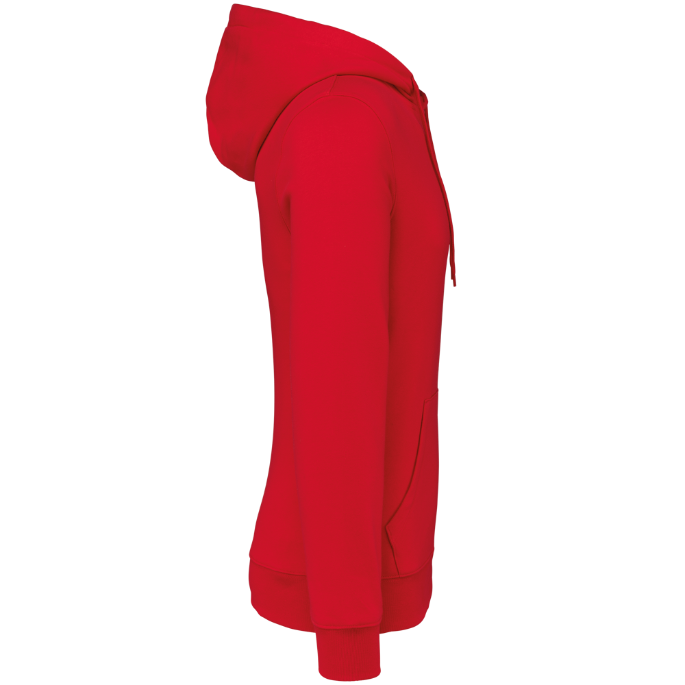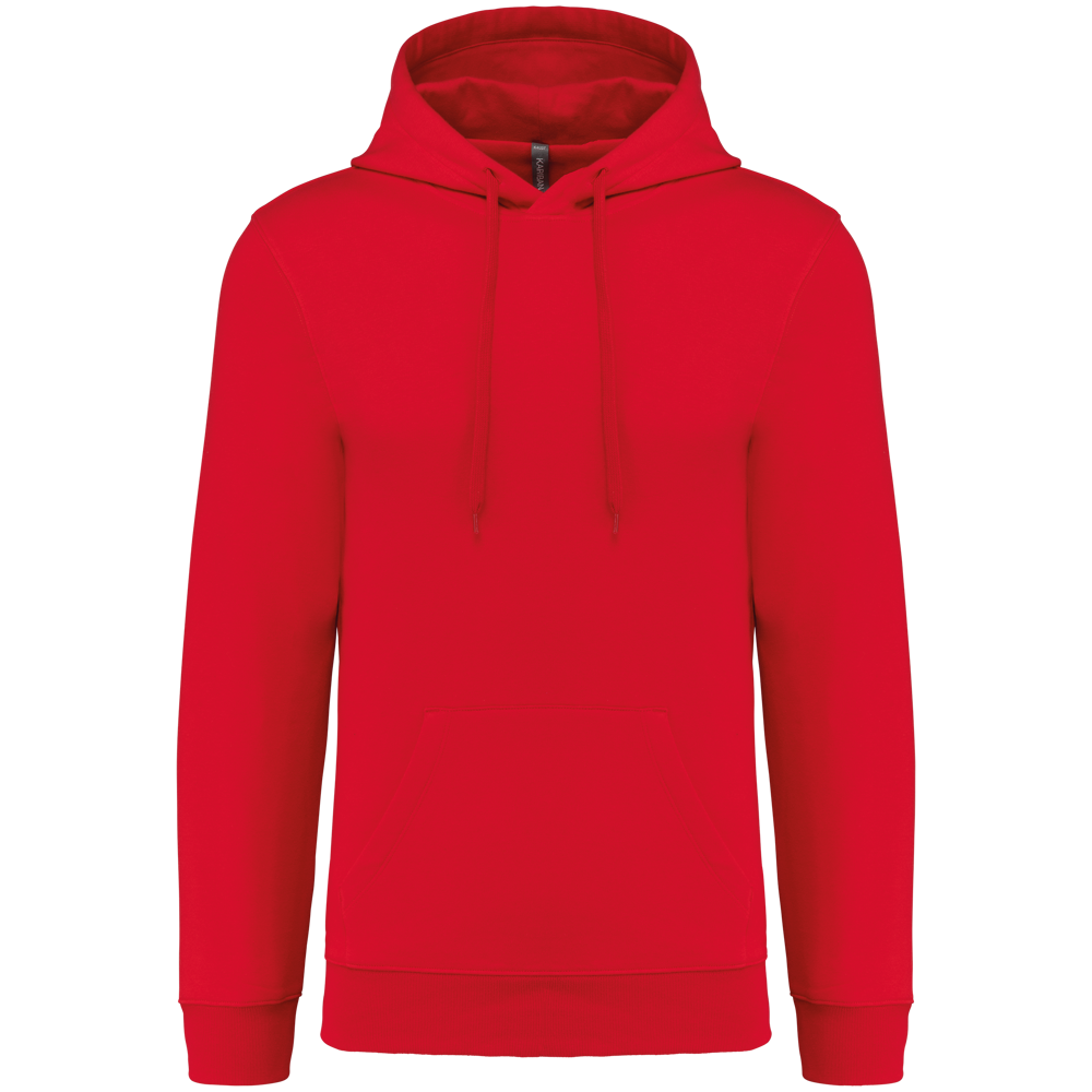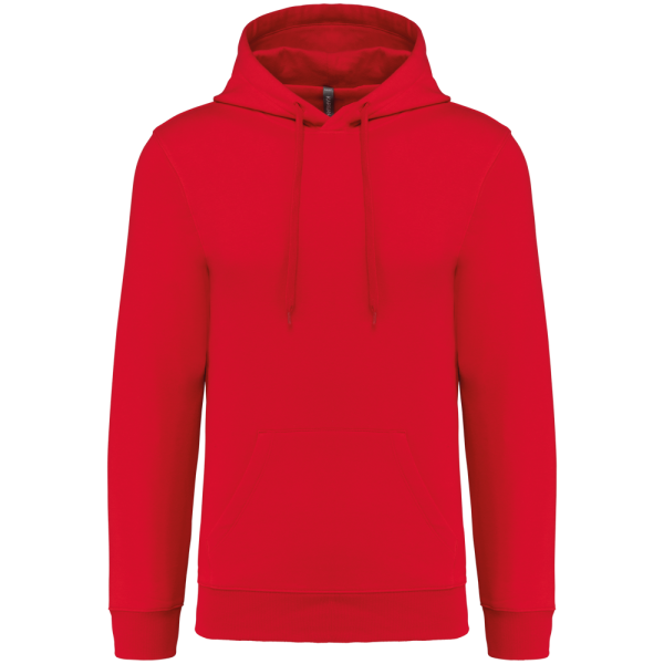 80% cotone / 20% poliestere. Tessuto in felpa garzata LSF 3 fili (Low Shrinkage Fleece) con trattamento antipilling. Capo fabbricato in Portogallo. Taglio straight. Struttura tagliata e cucita. Costina 1x1 a struttura tubolare per una migliore finitura a fondo manica e fondo capo. Tasca a canguro. Cappuccio foderato 100% in cotone jersey con coulisse piatta e occhielli ad asola. Finitura a mezzaluna all'interno del collo. Finitura a doppia impuntura a fondo manica e fondo capo. Nessuna etichetta con il nome del marchio sul collo; solo una piccola etichetta con l'indicazione della taglia per semplificare la personalizzazione.