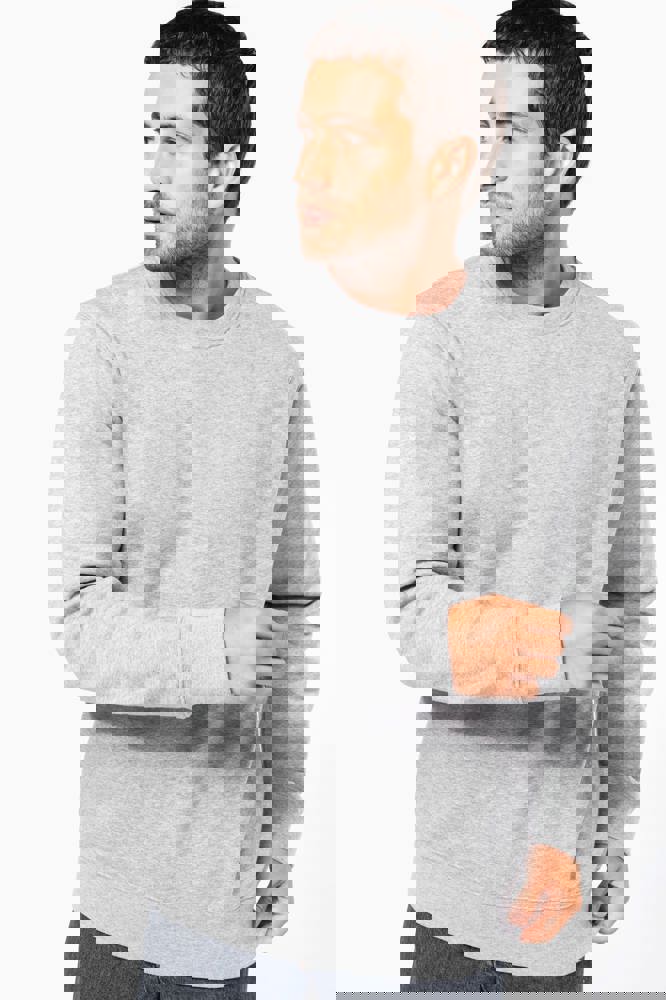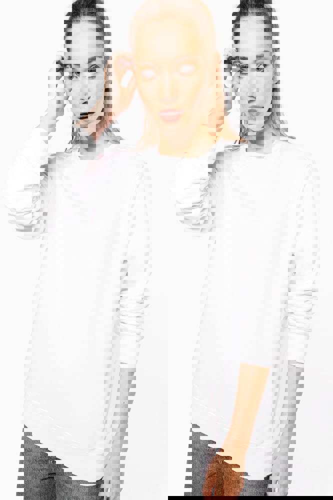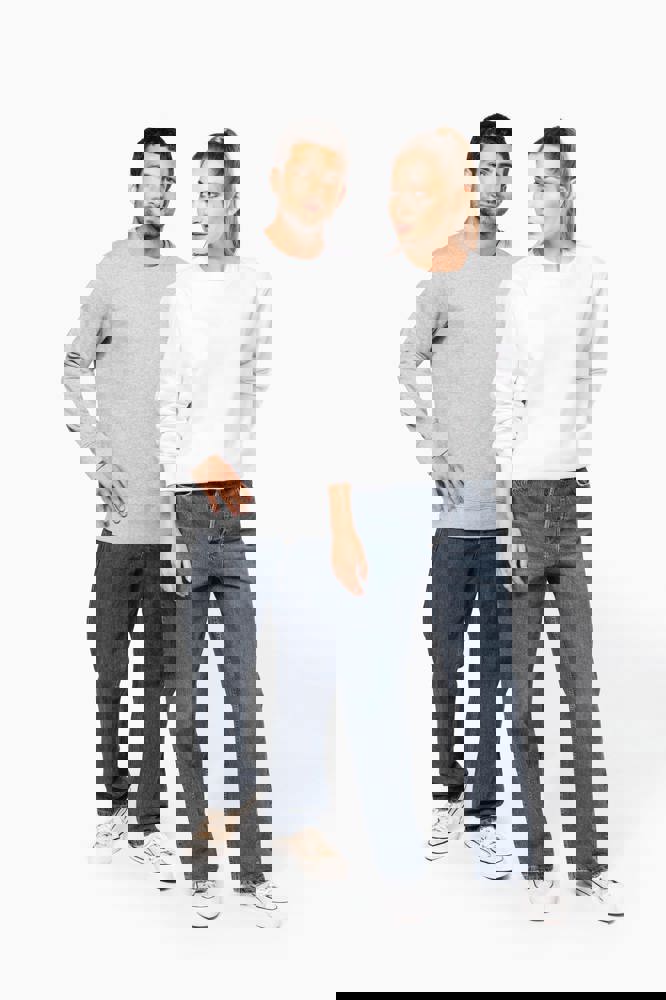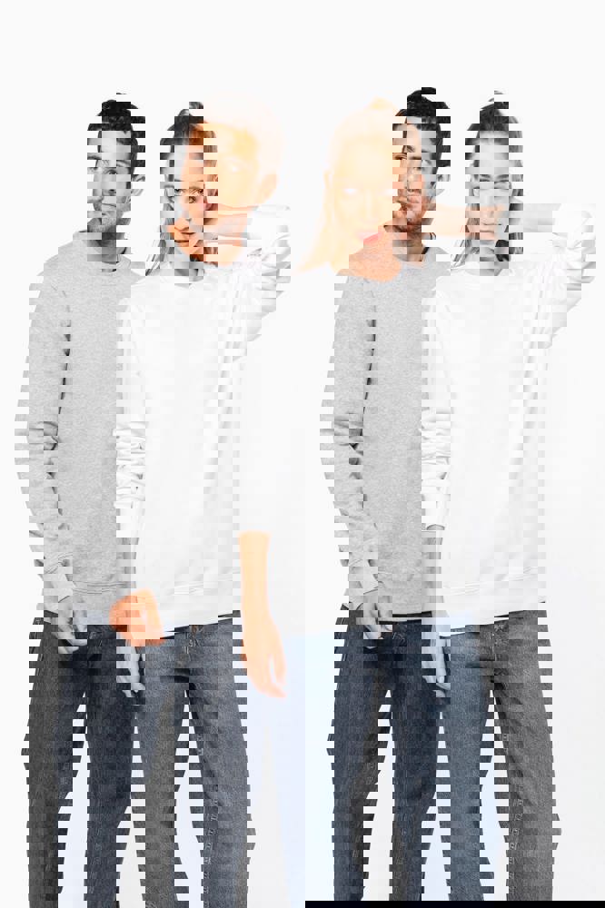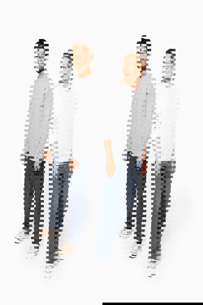80% cotone / 20% poliestere. Tessuto in felpa 3 fili garzata LSF (Low Shrinkage Fleece) con trattamento antipilling. Capo fabbricato in Portogallo. Taglio straight. Collo rotondo. Struttura tagliata e cucita. Costina 1x1 a struttura tubolare per una migliore finitura su collo, fondo manica e fondo capo. Finitura a mezzaluna all'interno del collo. Finitura a doppia impuntura a fondo manica e fondo capo. Nessuna etichetta con il nome del marchio sul collo; solo una piccola etichetta con l'indicazione della taglia per semplificare la personalizzazione.