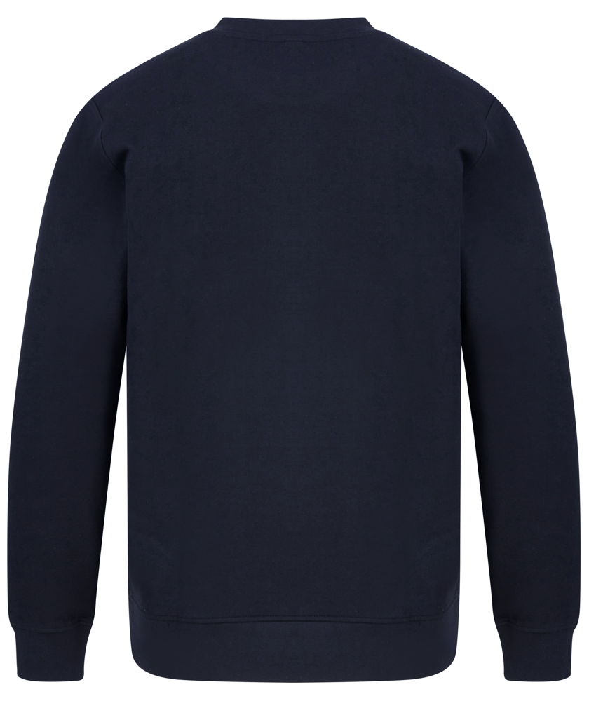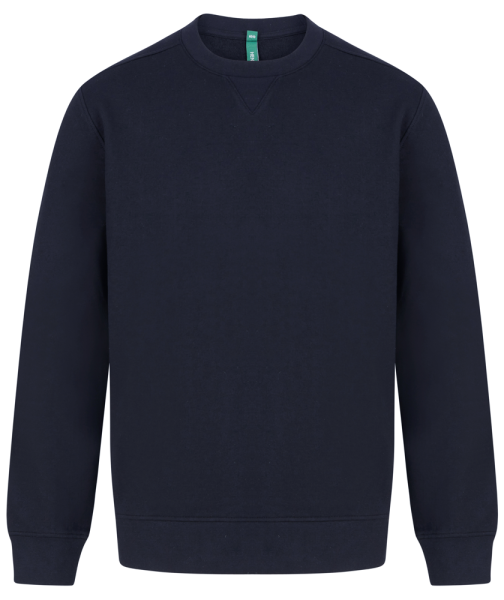 60% cotone rigenerato / 40% poliestere riciclato. Pile spazzolato sulla schiena. Polsini e orli a costine. Inserto a V al centro. Taglio regolare. Il colore può variare per la presenza di materiali riciclati.