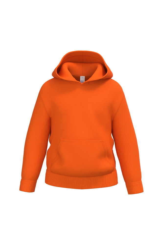 50% cotone / 50% poliestere. Felpa garzata taglio-cucito. Taglio dritto. Fondo maniche e fondo capo in maglia a costine 1x1 con doppie impunture. Tasca a marsupio. Cappuccio foderato in jersey. Etichetta del marchio staccabile.
