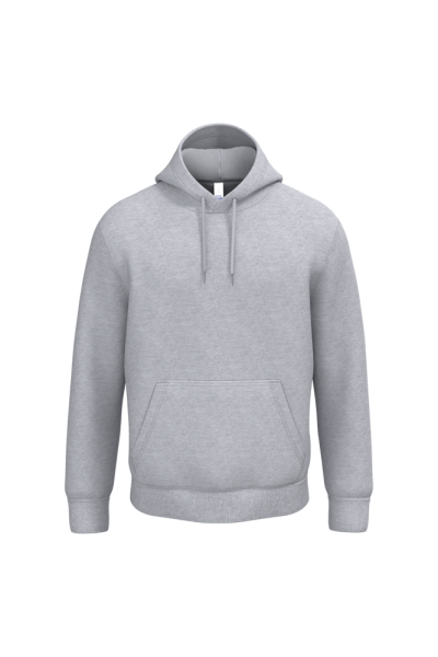 50% cotone / 50% poliestere. Felpa garzata tubolare. Taglio dritto. Fondo maniche e fondo capo in maglia a costine 1x1 con doppie impunture. Tasca a marsupio. Cappuccio foderato in jersey con cordino rotondo tono su tono. Etichetta del marchio staccabile.