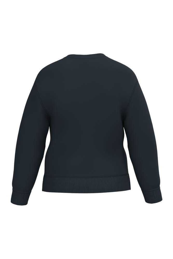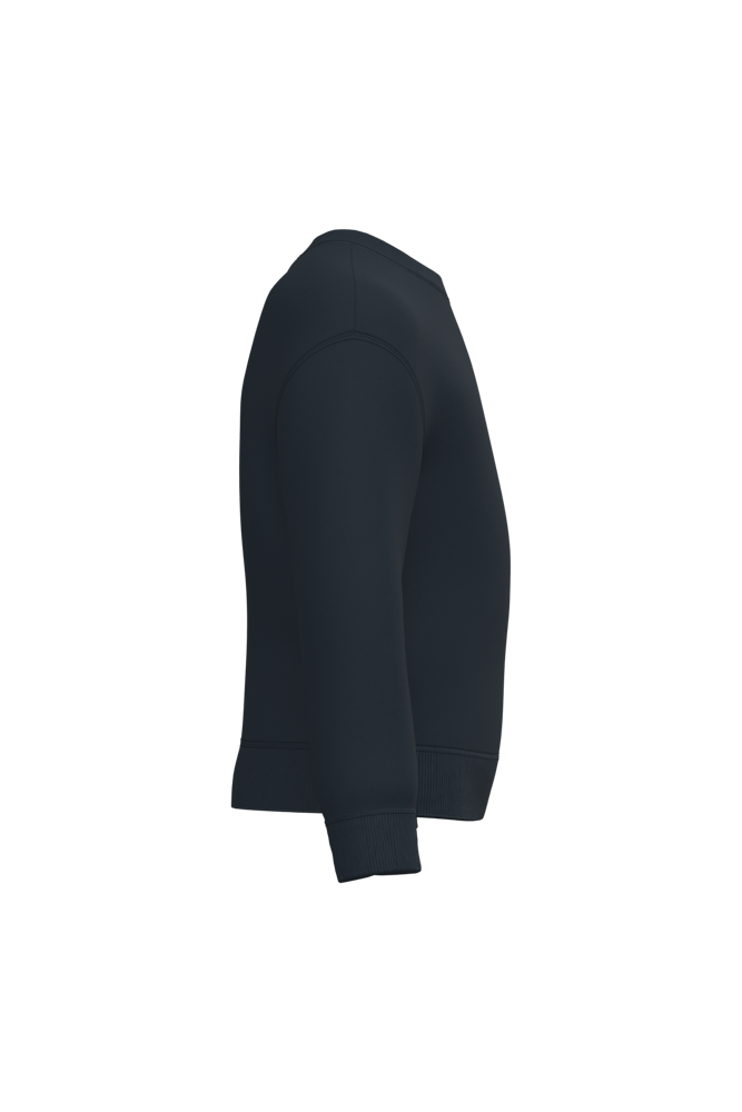 50% cotone / 50% poliestere. Felpa garzata taglio-cucito. Taglio dritto. Collo. fondo maniche e fondo capo in maglia a costine 1x1 con doppie impunture. Etichetta del marchio staccabile.