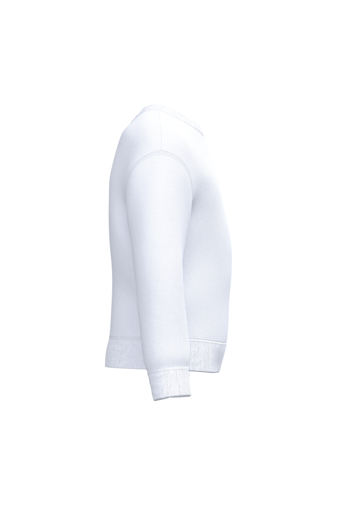 50% cotone / 50% poliestere. Felpa garzata taglio-cucito. Taglio dritto. Collo. fondo maniche e fondo capo in maglia a costine 1x1 con doppie impunture. Etichetta del marchio staccabile.