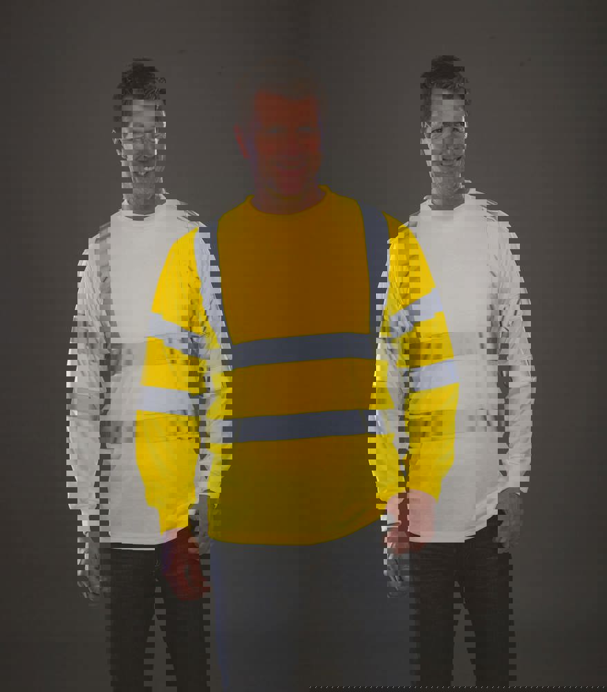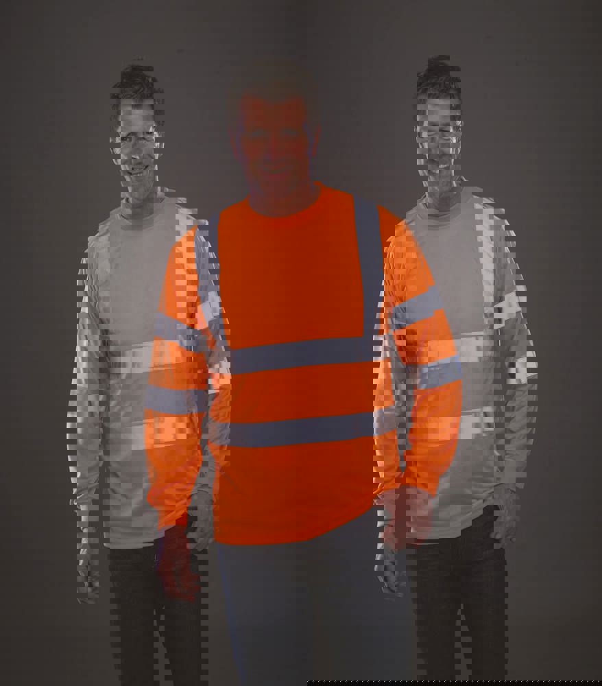100% poliestere. 2 fasce riflettenti (larghezza 5 cm) intorno al corpo e alle braccia. Una "bretella" riflettente su ogni spalla. Collo e polsini morbidi a costine tono su tono. Confezione singola. Conforme alla norma EN ISO 20471:2013 Classe 3 e alla norma britannica GO/RT 3279 Issue 8:2013 relativa agli "Indumenti ad alta visibilità" nel settore ferroviario (solo Hi-Vis Orange).
