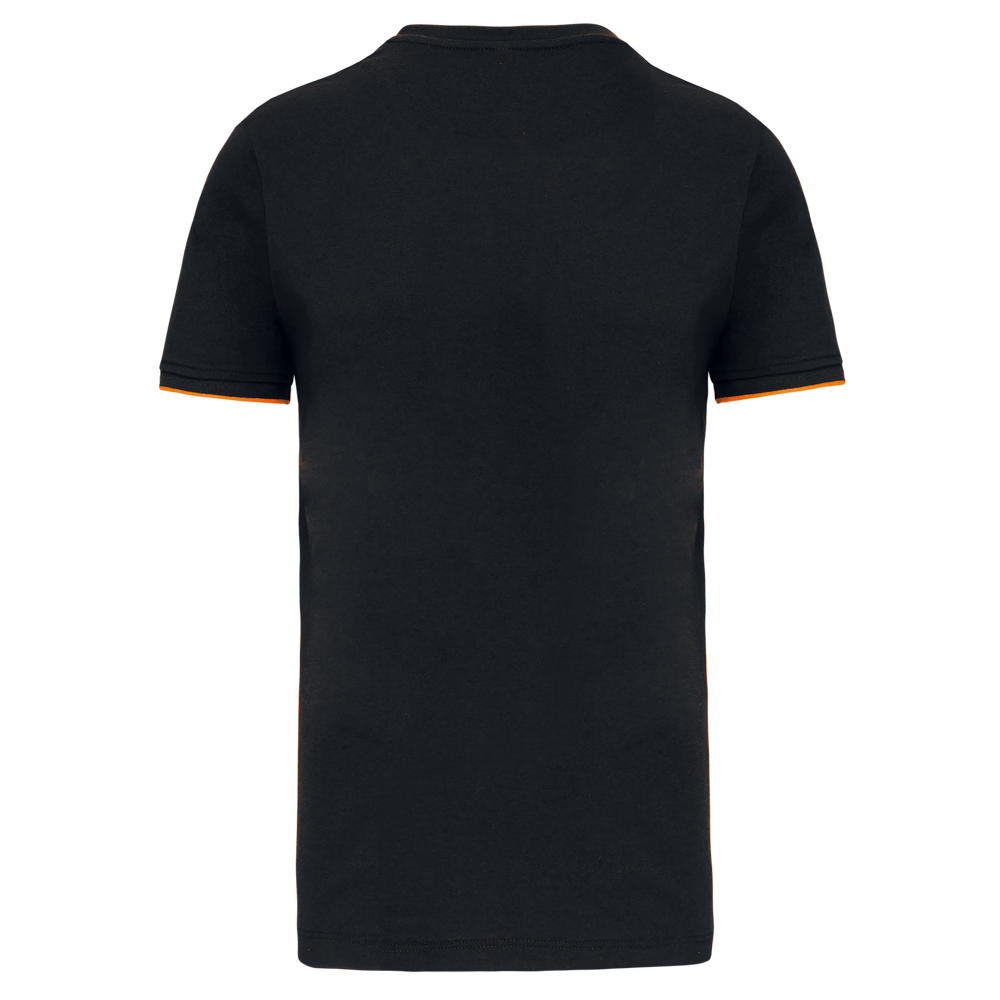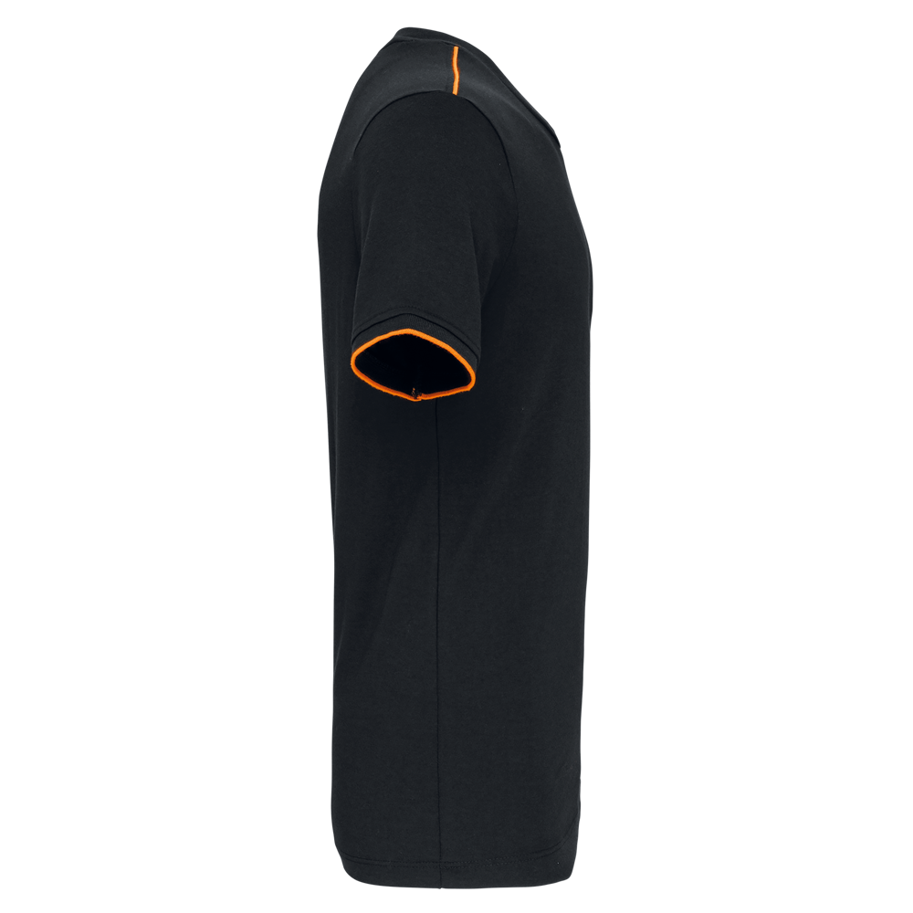 65% poliestere / 35% cotone. Cotone pettinato tessuto jersey. Lavabile a 60 °C. Trattamento antipilling. Girocollo con elastan. Dettaglio a contrasto su interno collo e spalle. Fondo manica a costine con bordino rigato a contrasto. Finitura a doppia impuntura a fondo capo. Ideale per un uso quotidiano.