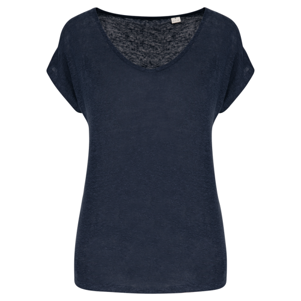 100% lino. Maglia. Taglio dritto. Cuciture laterali. Collo nel tessuto principale. Nastrino di... altro