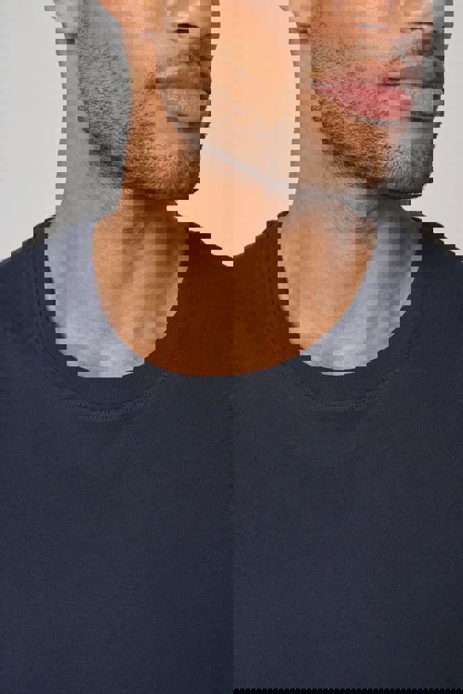 100% cotone. Oxford Grey: 90% cotone / 10% viscosa. Cotone pettinato. Jersey morbido. Trattamento antipilling. Lavabile a 40 °C. Taglio dritto. Collo rotondo con costine 1x1 e nastrino di rinforzo tono su tono. Giromanica ampio con bordo a taglio vivo. Finitura a doppia impuntura a fondo capo. Nessuna etichetta con il nome della marca sul collo; solo una piccola etichetta con l'indicazione della taglia per semplificare la personalizzazione.