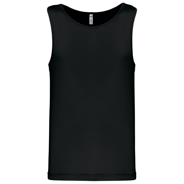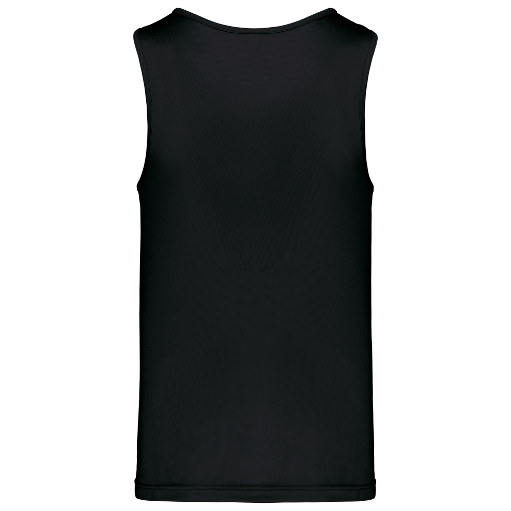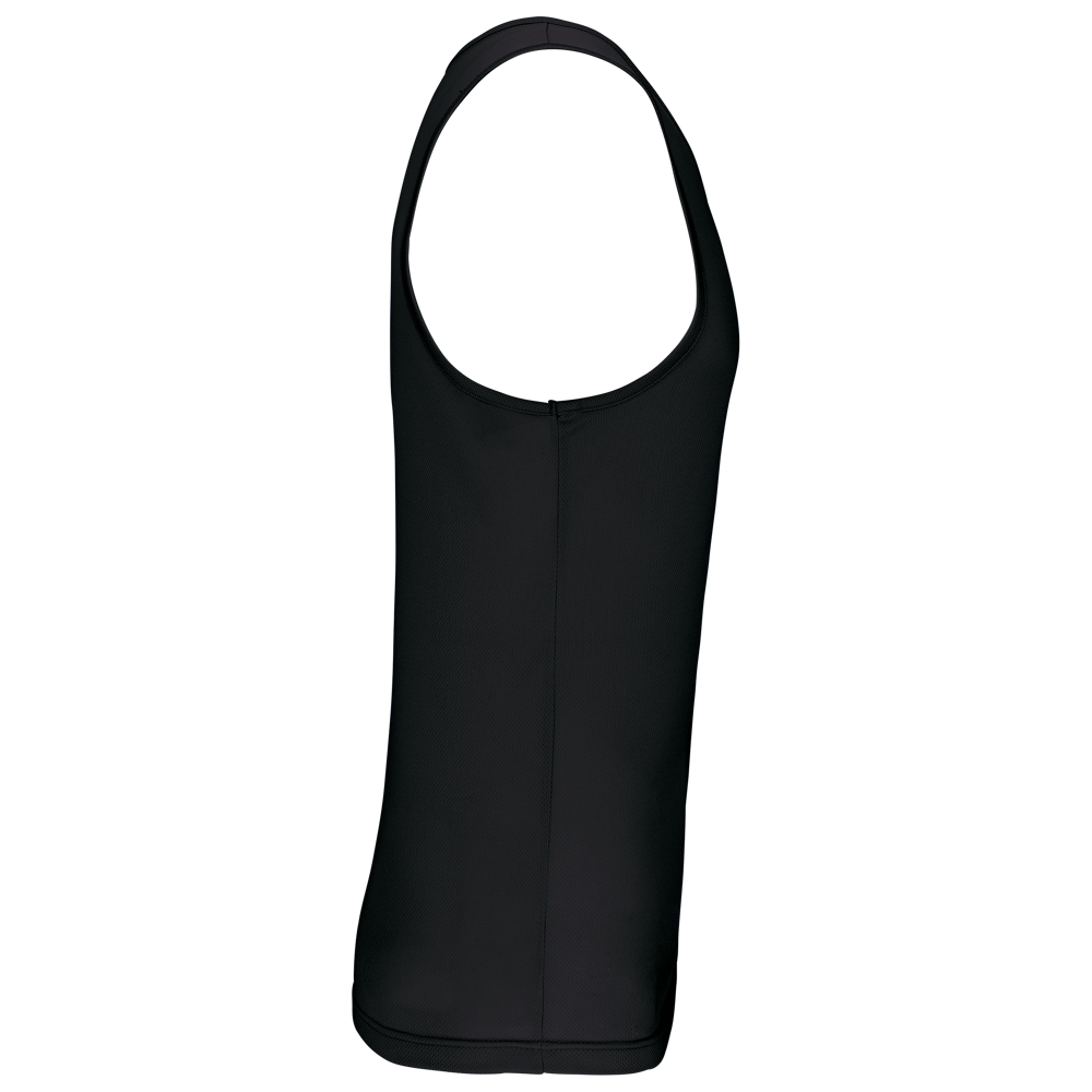 100% Poliestere. Tessuto leggero ad asciugatura rapida. Bretelle all'americana. Bordino al collo e al giromanica. Cuciture a doppio ago.
