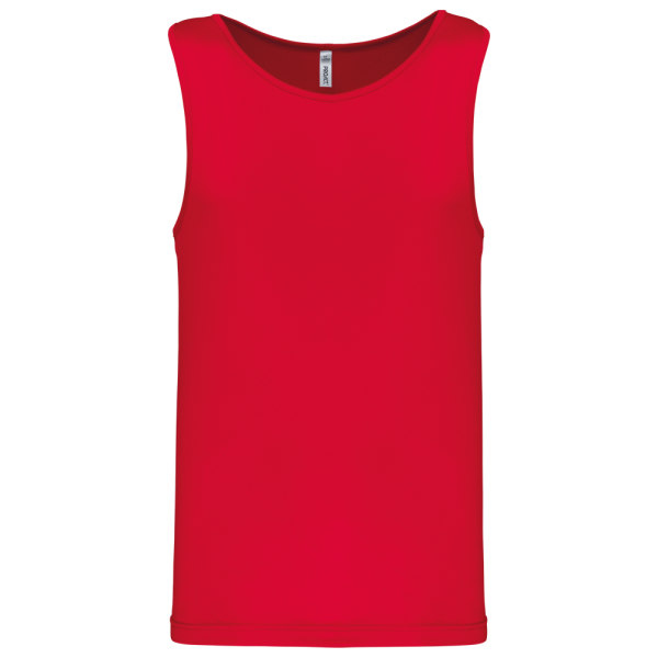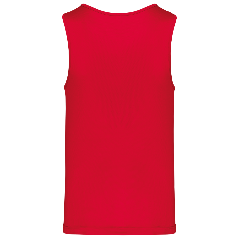 100% Poliestere. Tessuto leggero ad asciugatura rapida. Bretelle all'americana. Bordino al collo e al giromanica. Cuciture a doppio ago.