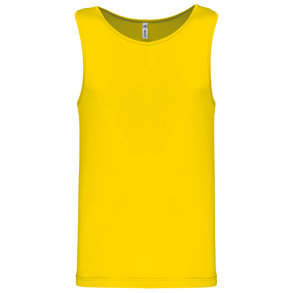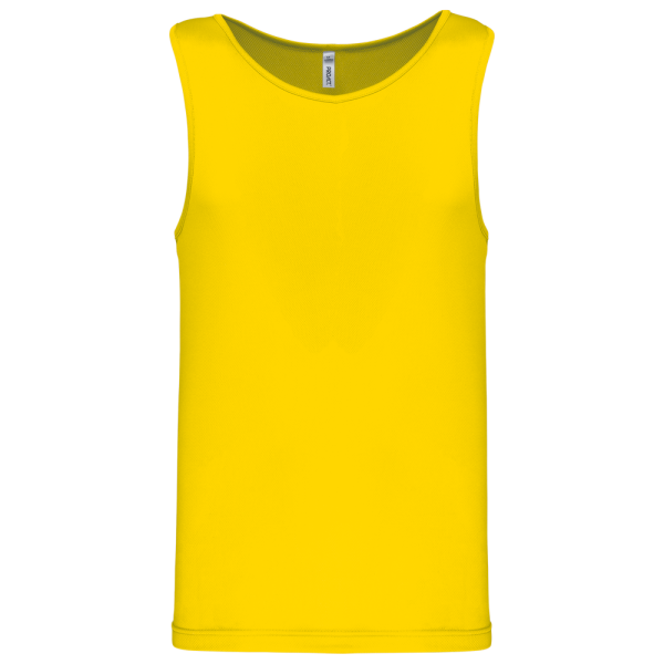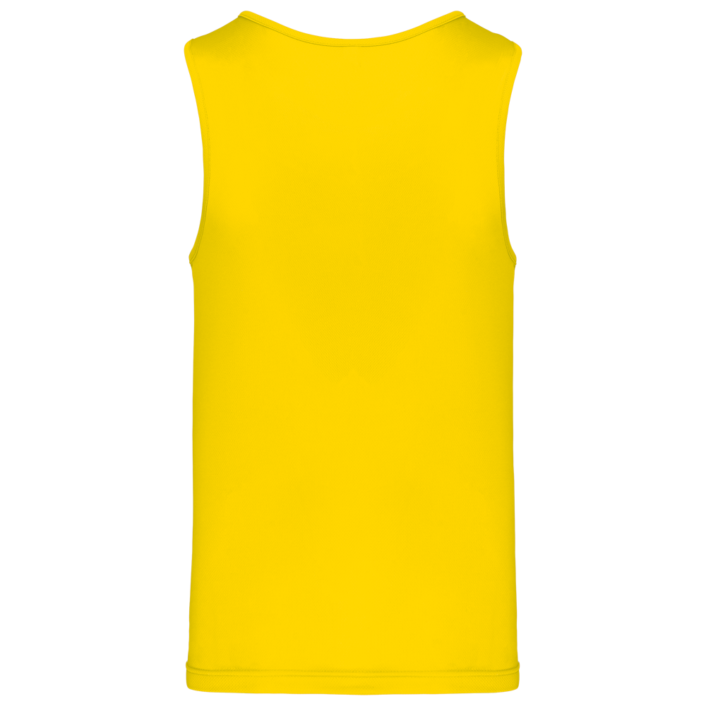 100% Poliestere. Tessuto leggero ad asciugatura rapida. Bretelle all'americana. Bordino al collo e al giromanica. Cuciture a doppio ago.