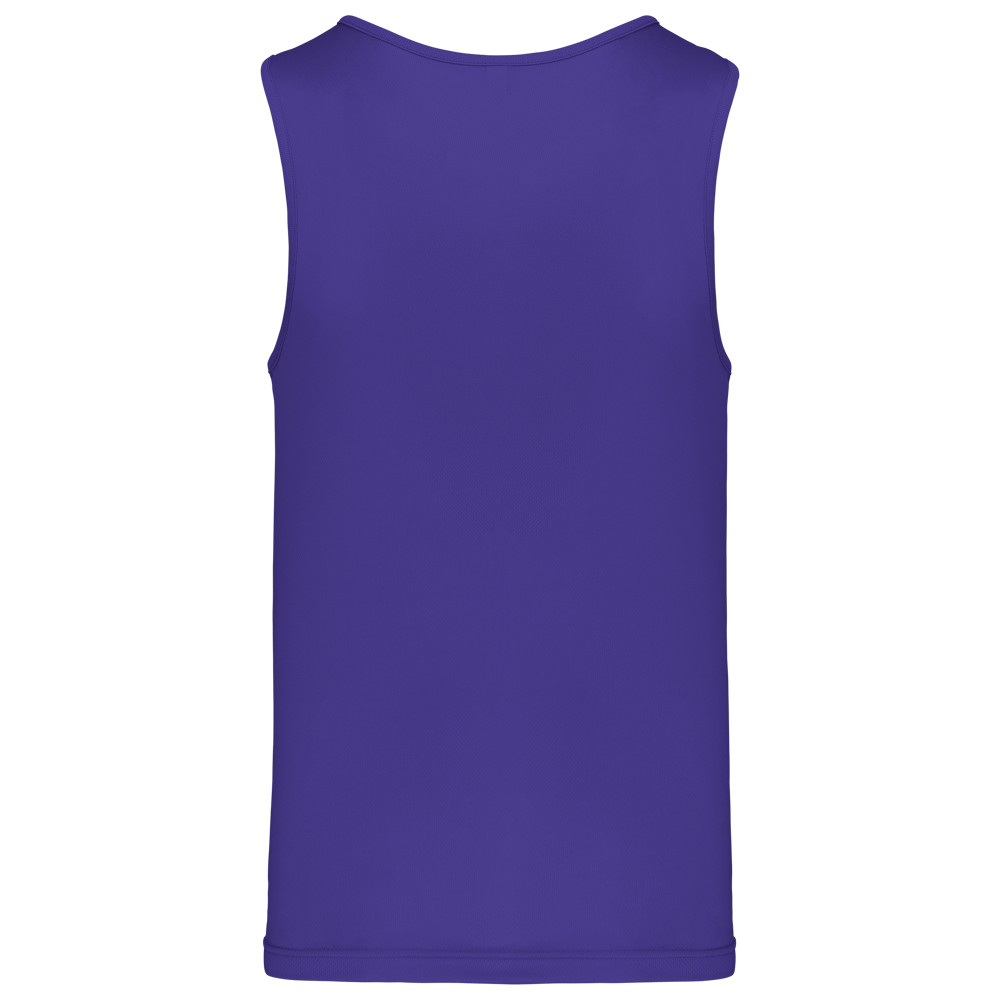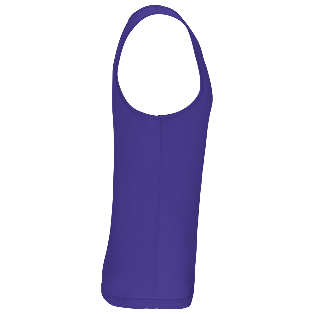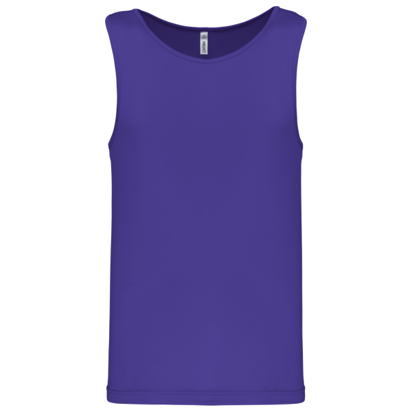 100% Poliestere. Tessuto leggero ad asciugatura rapida. Bretelle all'americana. Bordino al collo e al giromanica. Cuciture a doppio ago.