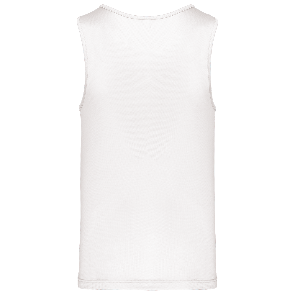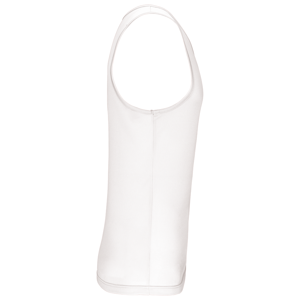 100% Poliestere. Tessuto leggero ad asciugatura rapida. Bretelle all'americana. Bordino al collo e al giromanica. Cuciture a doppio ago.
