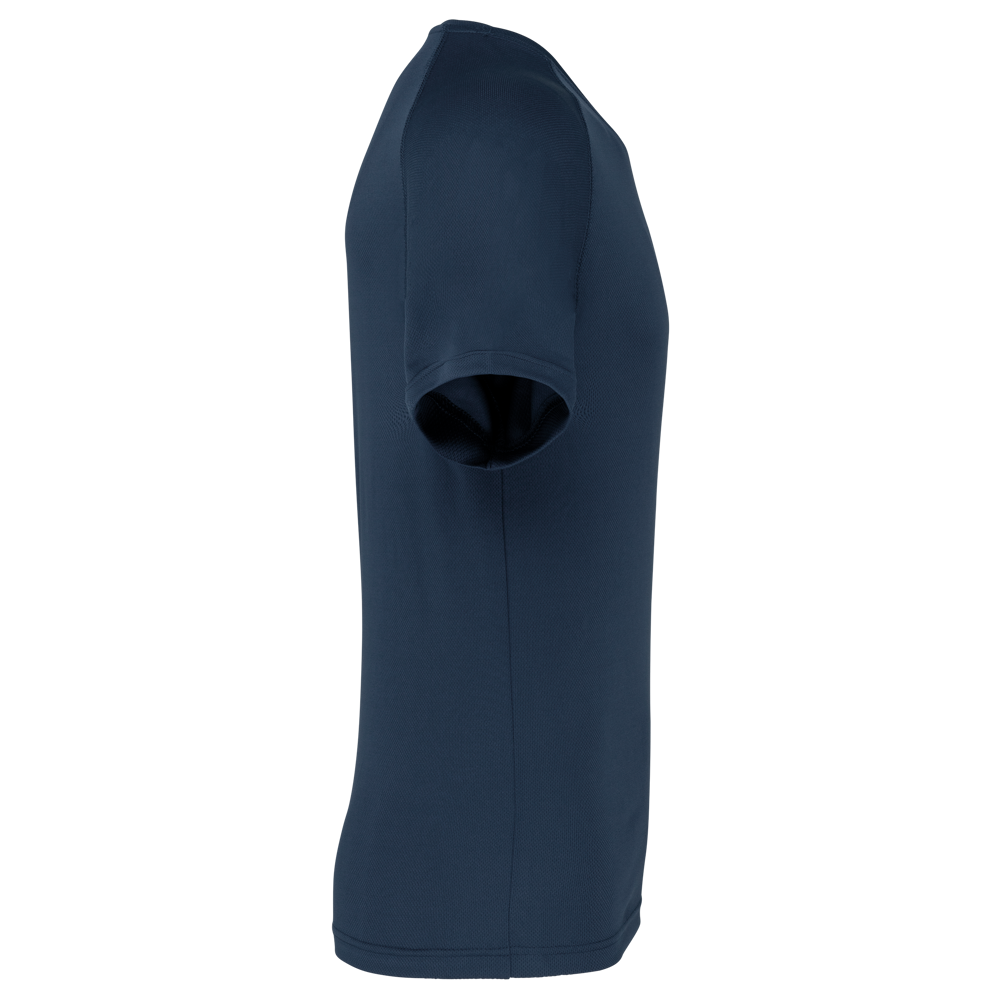 100% Poliestere. Tessuto leggero ad asciugatura rapida. Maniche raglan con cuciture in contrasto. Cuciture a doppio ago alle maniche e sul fondo.