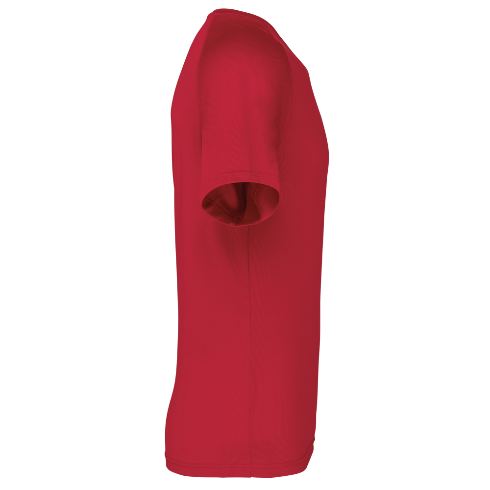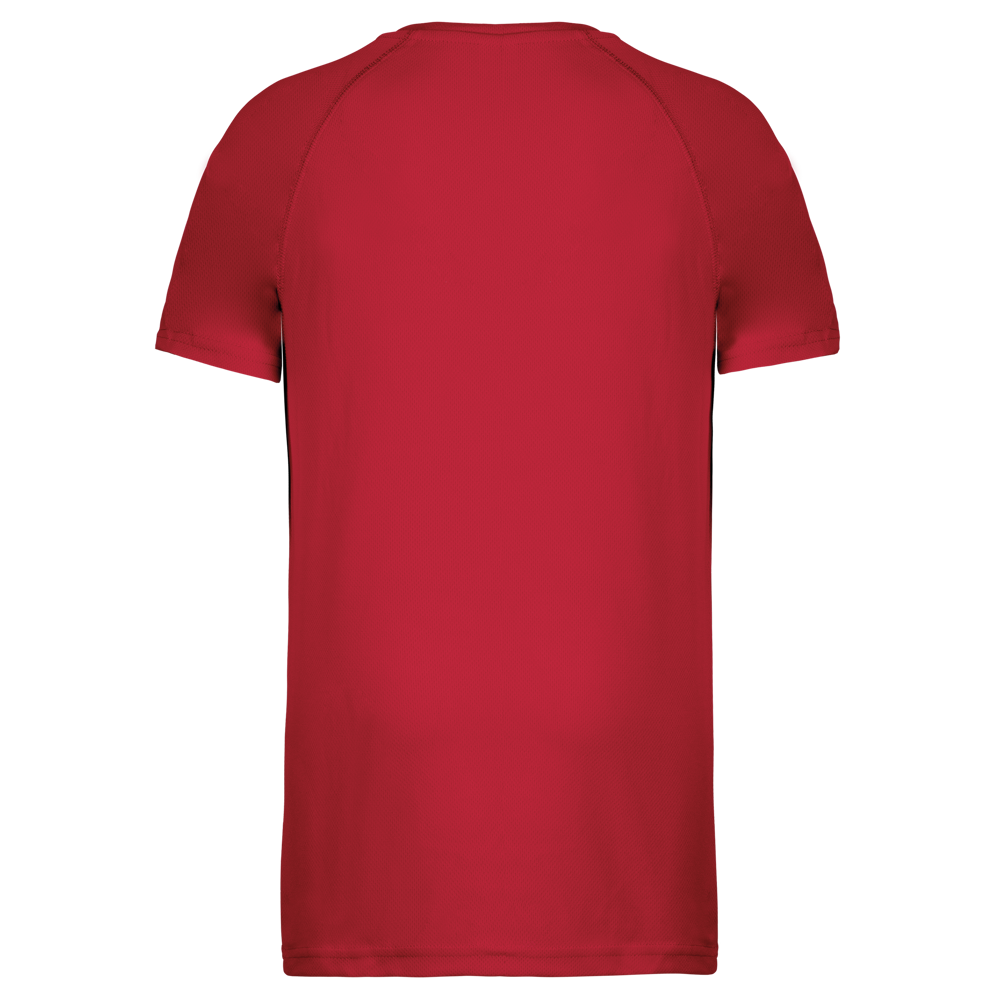100% Poliestere. Tessuto leggero ad asciugatura rapida. Maniche raglan con cuciture in contrasto. Cuciture a doppio ago alle maniche e sul fondo.