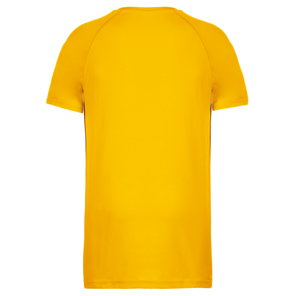 100% Poliestere. Tessuto leggero ad asciugatura rapida. Maniche raglan con cuciture in contrasto. Cuciture a doppio ago alle maniche e sul fondo.
