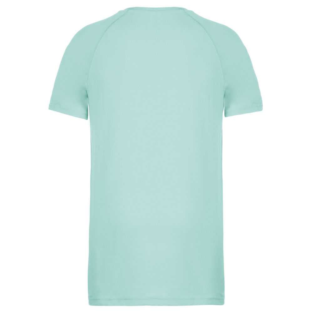 100% Poliestere. Tessuto leggero ad asciugatura rapida. Maniche raglan con cuciture in contrasto. Cuciture a doppio ago alle maniche e sul fondo.