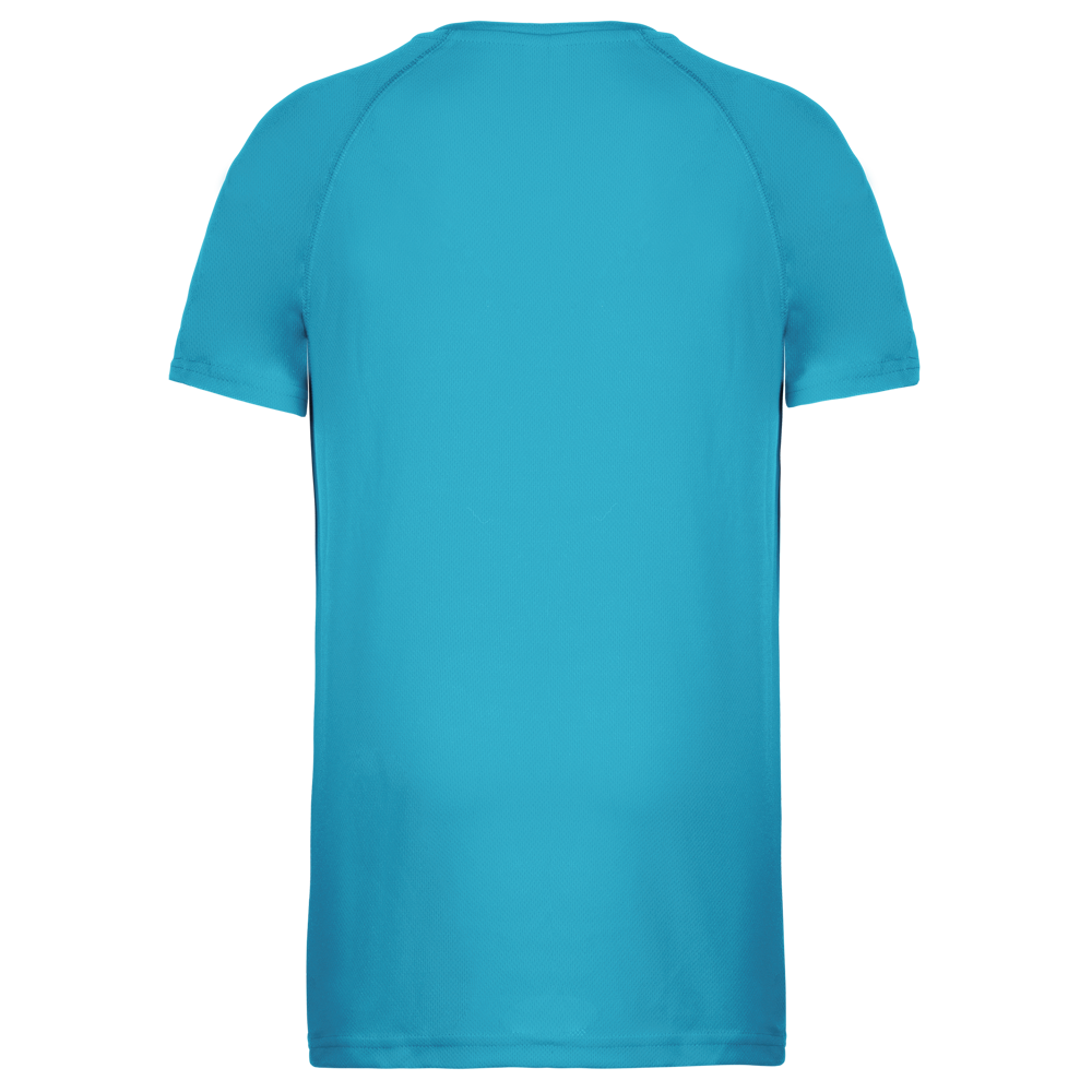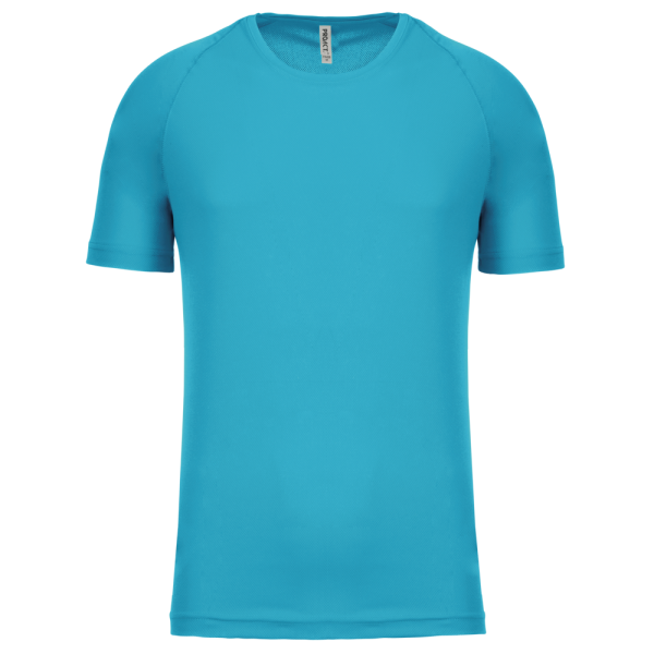100% Poliestere. Tessuto leggero ad asciugatura rapida. Maniche raglan con cuciture in contrasto. Cuciture a doppio ago alle maniche e sul fondo.