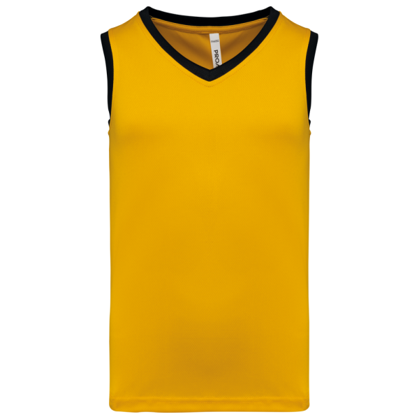 100% poliestere occhio di pernice. Scollatura a V. Profilo a contrasto su colletto e giromanica. Finitura a doppia cucitura sull'orlo inferiore. Etichetta del marchio staccabile.