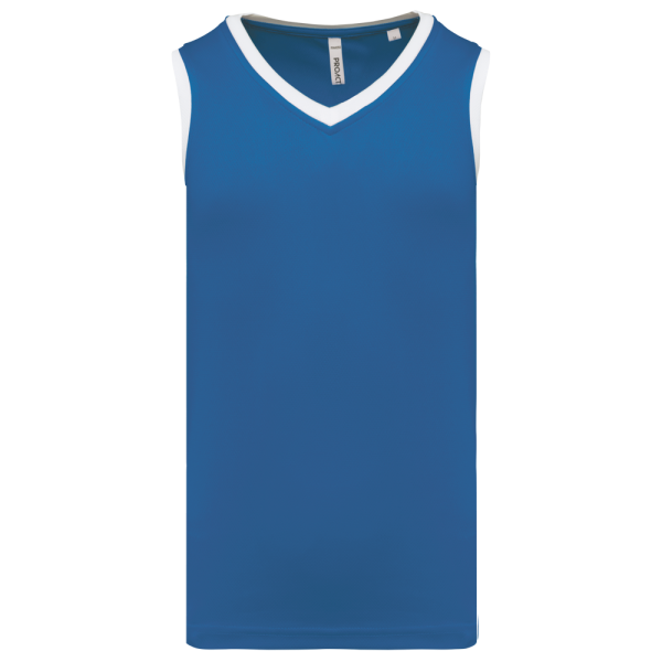 100% poliestere occhio di pernice. Scollatura a V. Profilo a contrasto su colletto e giromanica. Finitura a doppia cucitura sull'orlo inferiore. Etichetta del marchio staccabile.