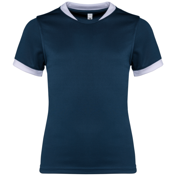 100% poliestere. Maglia interlock. Taglio dritto. Modello tagliato e cucito. Girocollo a costine 1x1 bianco a contrasto per tutti i colori con inserto in interlock tono su tono. Fondo manica a costine 1x1 bianco a contrasto per tutti i colori. Nastrino di rinforzo in interlock tono su tono. Cuciture rinforzate a doppia impuntura su giromanica, spalle e lati del capo. Finitura a doppia impuntura a fondo capo. Etichetta con il nome del marchio rimovibile.