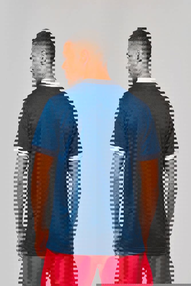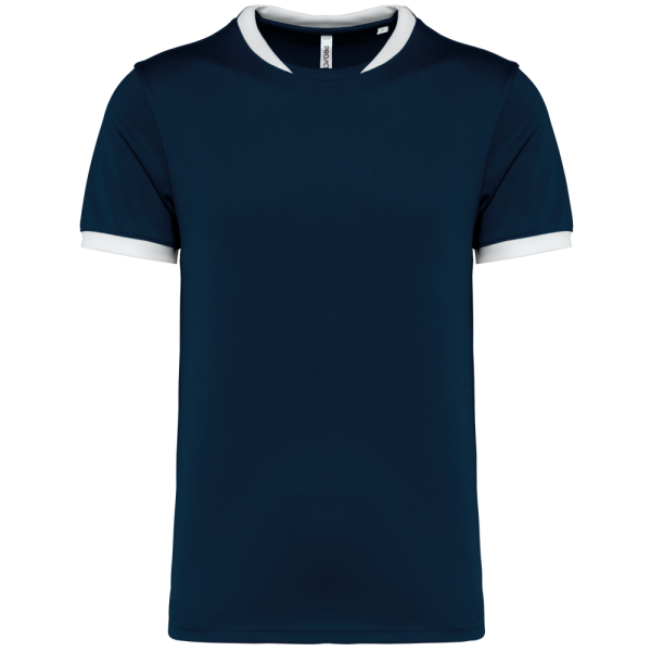 100% poliestere. Maglia interlock. Taglio dritto. Modello tagliato e cucito. Girocollo a costine 1x1 bianco a contrasto per tutti i colori con inserto in interlock tono su tono. Fondo manica a costine 1x1 bianco a contrasto per tutti i colori. Nastrino di rinforzo in interlock tono su tono. Cuciture rinforzate a doppia impuntura su giromanica, spalle e lati del capo. Finitura a doppia impuntura a fondo capo. Etichetta con il nome della marca rimovibile.