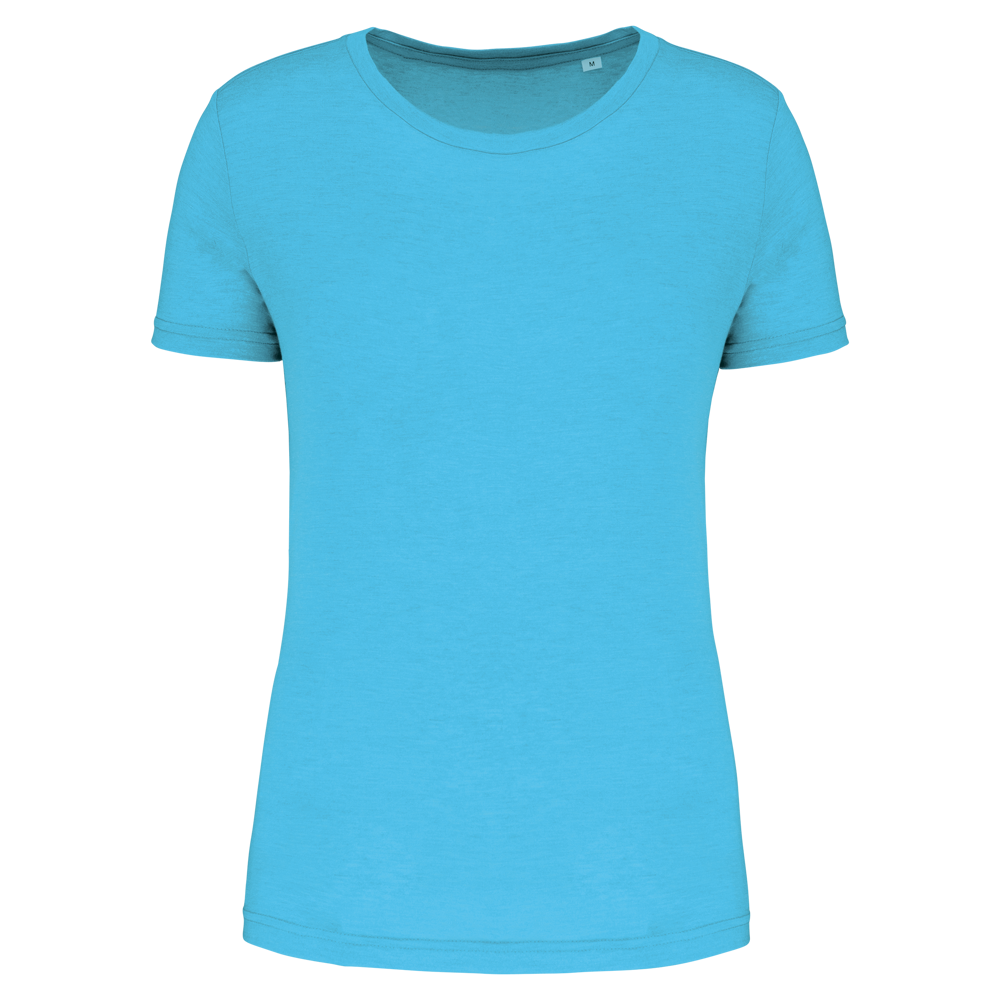 50% poliestere / 25% cotone / 25% viscosa. Tessuto jersey. Trattamento antipilling. Girocollo. Taglio dritto. Nastrino di rinforzo tono su tono spalla-collo schiena-spalla. Finitura a doppia impuntura a fondo manica e fondo capo. Finitura tubolare a fondo capo e fondo manica. Etichetta con il nome del marchio strappabile per semplificare la personalizzazione.